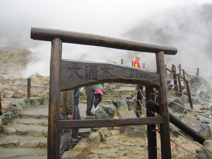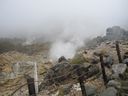 ![]() 大湧谷 ☆ この写真は31日早朝の写真です (30日は外に出られる状況では無い) ☆ 30日は台風の中を箱根に向かう・・・ 小田原を過ぎた頃から強風と雨の洗礼を受け 折れた木々が道路に散乱する場所を右に左に避けて車は進み大湧谷に着いた 大湧谷の駐車場は閉鎖されてた為に店の前に車を止めて買い物を済ませて退散した ![]() 沸き上がる温泉 此処で卵が茹でられる 白い殻が黒くなり茹で上がると伝説の卵が出来上がるのだ! 「1個食べると7年、2個で14年寿命が延びるとか……。 などと言い伝えもあり、延命長寿の黒玉子として多くの人に親しまれております。」 ![]() 至る所から湯気が立ち上る ![]() 寒さに震えるメンバー Su−さん Gonちゃん Sadaさん Zenちゃん Yukariちゃん 台風が接近してる箱根へ一台の車が走る 小田原を過ぎると風雨が強く至る所に木々が散乱してた 大湧谷に着くと駐車場は閉鎖されてて入れない、仕方なくお店の前に車を止めて売店へ避難した・・? 買い物を済ませた私達は退散して翌朝の再探索と成りました 戻る |
