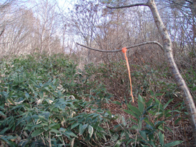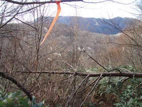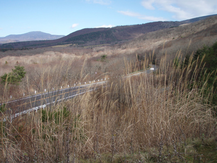 ![]() 中央は西吾妻山(未だ白い部分が少ないです) Loveの運動へ船明神山途中まで行ってきました 登り口から藪で進むことが出来ないため急斜面の山腹を登る ![]() 母成峠古戦場 駐車場に在る古戦場の碑に挨拶をしてから登山口へ進んだ! ![]() 母成グリーンライン 登山口の案内板(見えない・・?) 眼下に見える母成グリーンラインを後にして 駐車場から車両通行禁止になってる旧道を進むと直ぐに 登山道入り口です 目印は在るが・・?(登山道の様子) 道標の脇を上がるが笹で進めない 其処から山腹を巻くように進み登山道と合流したがご覧のように道らしき道は在りません ![]() 奥に見える船明神山 目印 急斜面を登り切ると緩斜面に変わり其処から間もなく少しだけ下ります 開けた空間からは船明神山の姿を覗くことが出来る 藪藪の登山道 ヤブヤブの道が続きます ![]() キノコ発見 灌木林 あまりの藪に灌木林に逃げ込むとキノコを発見! 登山道を歩くより林間に入った方が歩きやすかった ![]() 奥に見える磐梯山 Love 木々の間からは磐梯山も見ることが出来ます 11月初めは白かった山も今日はご覧の通り雪化粧はお預けでした ![]() コブの在る木 ダケカンバ 林間にはいるとコブの木やダケカンバの巨木が太陽の日差しをいっぱい浴びて気持ち良い〜〜 と話しかけてきた 足下の落ち葉を踏みしめて歩くとサクサクと心地よいメロディーが流れる ![]() 大滝山〜川桁山方面 下山してくると目線に現れた大滝山・・? 右奥には川桁山の尖りも確認でき 邪魔してた木々の葉が落ちて視界良好です ![]() 古戦場の証 古戦場に在ります碑の説明が掘られてる ![]() 古戦場の碑 駐車場から船明神山方面 素晴らしい碑が建てられてる 右手には今ほど登ってきた山が青空に輪郭を描き 秋模様の山容で横たわる ![]() 峠の駐車場にある案内板 駐車場にある案内板に目を通し改めて位置を確認して藪漕ぎを終了した あと10日もすればこの辺一体は真っ白く雪化粧をするはずです 季節の変わり目の清々しい山に感謝 感謝 ・・・Sei・・・ 戻る |