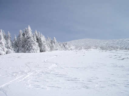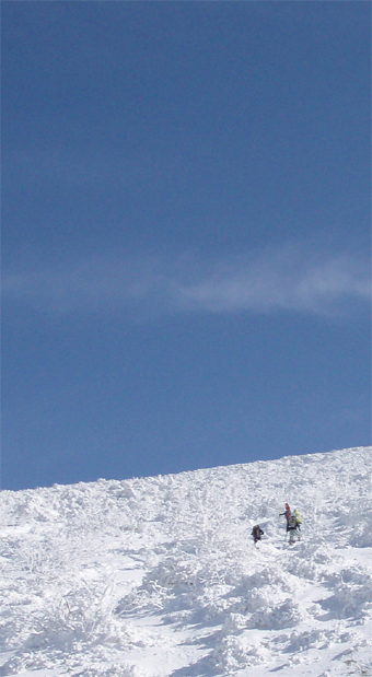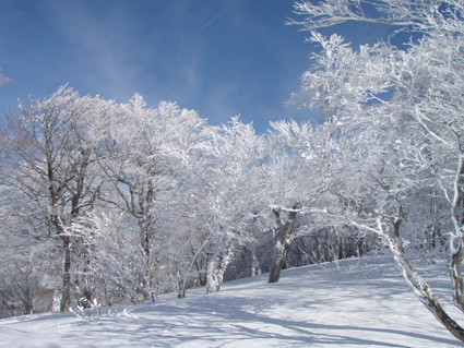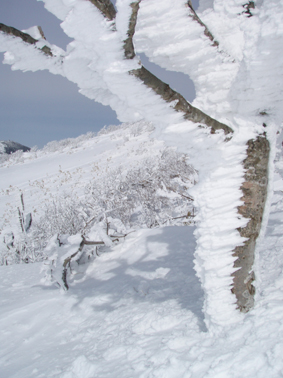 ![]() ゲレンデTOPからの展望 (中央に飯豊山〜吾妻山) 昨日までの荒れた天気が嘘のように回復した 仕事場から見る安達太良山や吾妻山は真っ白です 仕事の段取りを済ませたSei 何を思うか・・・ランクルに板をつけた パウ狙いで猫魔を目がけて車を出すが途中に見える箕輪山が おいで、おいでと手招きしてる 中ノ沢温泉街を通り115号線を右折した車は箕輪へ一直線にGoー 4時間券を求めてゲレンデに躍り出たのです ![]() 箕輪山 吾妻の山々 ゲレンデはガラガラだ! リフト TOPへ降りて広がる展望を楽しむ。 ![]() ブナ林の樹氷 ブナ林の林間にはパウが待っててくれるだろうと突撃でしたが・・・? 昨日まで降ってた雪は何処に行ってしまったのかガリガリの雪面が板をあざ笑う 「滑ってみ〜」 とでも言ってるように粉の姿はありませんでした。 ![]() 白い妖精が宿る木 パウダーは何処に! 強風による悪戯なのか 隠れてしまった粉を探し回るSei 谷にパウが溜まってるのだろうとゲレンデ脇の沢に行くが此処にも粉は潜んでいなかった ![]() ゲレンデの様子 (殆ど貸し切り状態) 粉を諦めたSeiは広々としたゲレンデでテレの練習を重ねるが・・? 圧雪されたゲレンデでは何となく滑れるが山にはいるとまるでダメ男に変身してしまいます。・・・(笑) ![]() ブナの巨木 子供のスキー教室か ↑ (^O^) ![]() ゲレンデより磐梯山 中央に東吾妻山 ![]() 箕輪山へ登るボーダー 高森山の奥に秋元湖が見えます ゲレンデ TOPから三人のボーダーが山に入るのが見えた ![]() 厳冬の模様 細身のモンスター 青い空 ツリーの脇を滑りました ゲレンデを後にする前に少し山肌を登る シールを持たないで来た為に高度を稼ぐのは辛く ツリーの最上部まで行き粉でない斜面を下る 青空に広がる山々を堪能し2時間30分の限られた休憩時間を楽しみました ・・・Sei・・・ 戻る |