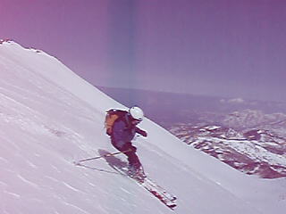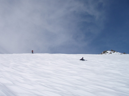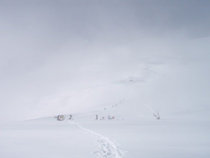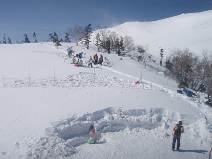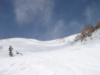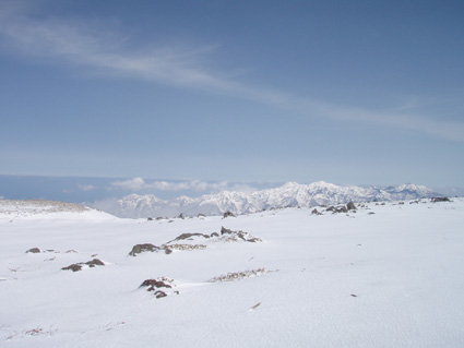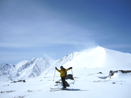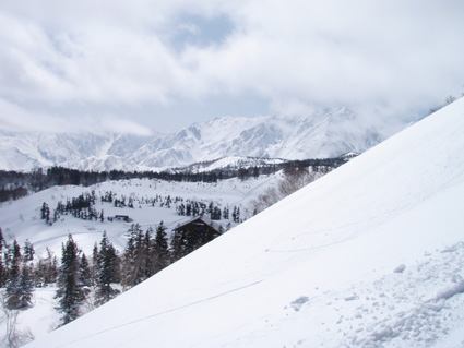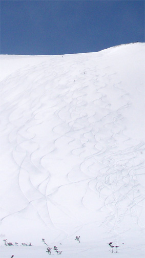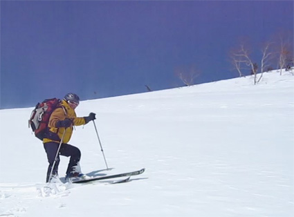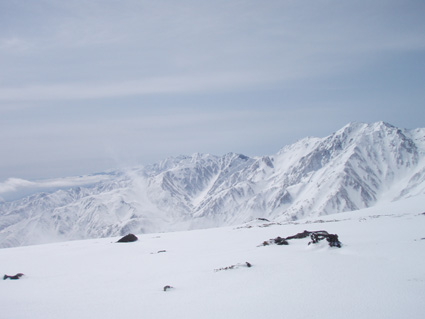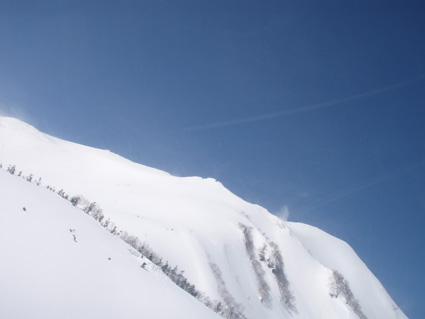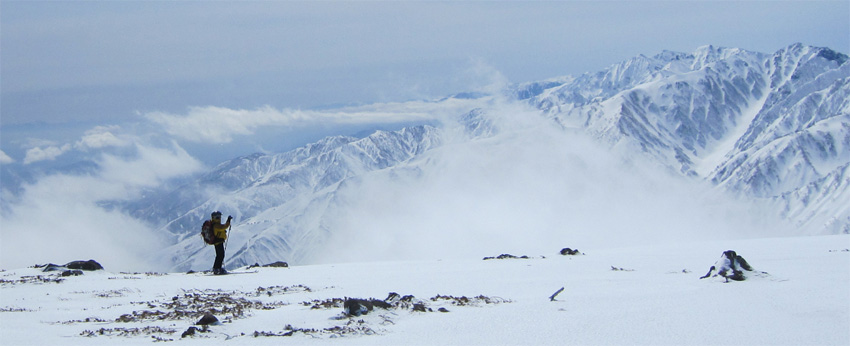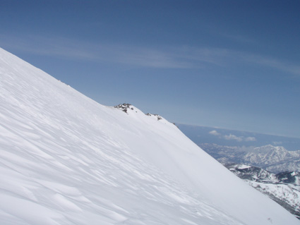 ![]() 白馬乗鞍岳山頂より東の尾根を眺める(火打山〜妙高山〜黒姫山〜戸隠山〜飯縄山) 22日の朝は昨日とは変わり朝から陽射しが部屋に差し込む素晴らしい天候です 窓から眺める山々には飾りのように雲がちりばめられ、尖りピークが眩しい北アの屋根が鎮座してた。 ![]() 眼下のゲレンデ ヘリスキー 20日に賑わいをみせてたヘリポートへ着いた 「搭乗料金は一万円」 20日の日に五千円なら俺たちも乗れるかな何て話してたのに・・・まさか・・・乗ることになるとは! ![]() 飛び立ちます コックピットクルー 何故に乗ることになったか 22日に福島まで帰る帰路の時間や山頂まで登る時間などを逆算すると通常の山行きでは・・?である 時間が足りない・・ん〜〜 仕方ないヘリに乗るべやと清水の舞台から飛び降りたつもりで大枚を叩きだしたのである・・・(笑) ヘリから航空写真を撮りました ヘリに搭乗するのは初めての経験です 下から眺めてると凄い早さで飛び去るのを見てたが実際に乗ってみると早さは感じられない しかし、あっと言うまに上昇して、あっという間に目的地へ空から撮った写真は数枚だ! またまた あっという間に天狗原に在るヘリポートに到着です ![]() 天狗原のヘリポート 搭乗したヘリです 崖に作られた狭いヘリポートに上手く降りるものですね! 眼下には前のヘリに搭乗した皆さんが山に行く準備をしてる姿が在りました ![]() 飛び去るヘリ 天狗原を進む! 私達を乗せたヘリは瞬く間に次の搭乗者を乗せるために飛び立ちました 青い空に広がる広大な雪原を眺めて 之から始まるバックカントリースキーの物語を空想する それは未知の世界に引きずり込まれる前兆に過ぎなかった。 ![]() 乗鞍岳の大斜面(点々とバックカントリーを楽しむ人影) 乗鞍岳の広い それは広い広いオープンバーンが口を開けて待ってたのです 二本のトレースが見られる こんなに早く滑り降りたと言う事は何時に登って来たのだろうか・・・? ヘリを使って来たのでは時間が合わない と 言うことは 早出で・・・いや違うな・・・ゴンドラが動く時間は・・・なんか難しい想像であり難問を解くのを諦めました ![]() ガスが押し寄せる 振り返ると! 登り初めて直ぐにガスが押し寄せるも消えるのに時間は要らない 今日は神様がくれた絶好の登山日和なのだ! 振り向くと後続者が列をなして登ってきます ![]() シュカブラが綺麗だ この斜面を滑る 山頂直下まで来るとシュカブラの模様に感動する 派手さのない模様に心が騒ぐのは何でなのか、それは三年越しで山頂まで来れた心の動揺が 見る物の全てに感謝と感激の表れを物語ってるとしか言いようがなかった ありがとう 厳しくもあり激しくもある冬のアルプスよ 私は前回の猛吹雪の時に辿り着いたダケカンバの木を見つめて語りかけた ![]() 広い乗鞍岳の山頂 ケルンの前で(Sei〜Gonちゃん) 広大な山頂の広場は何処までも平らである GPSの矢印に向かって進むと山頂のケルンが見えてきた 来たど〜冬の白馬乗鞍岳よ! ![]() ケルンの後方に雪煙の小蓮華山 山頂より雪倉岳 山頂を彷徨うように歩く北から南回りに歩く 360°の大展望は私達を魅了した 神々しいうねりや突然吹き上げる雪煙の表情が山頂に立った喜びとコラボして 無性に嬉しい 叫びたくなる 叫んでしまおうか 「わ〜〜〜お ありがとう」 ![]() 山頂より妙高〜火打山方面を眺める 山頂のSei なかなか山頂から降りる事が出来ない私達は 同じ風景を飽きることを知らないのか何時までも眺めてました ![]() 山頂のGonちゃん 小蓮華山の斜面がおいでおいでと誘ってる様な斜度である 美味しそうな斜面は時として牙を剥き出しにするのだろうなと行くことが出来ない斜面を眺めた ![]() 小蓮華山 乗鞍岳のSei 山行きの記録で今回くらい写真に登場するSeiは珍しい、嬉しさがマジに出てしまい 記録に残したくシャッターを切るのでした・・・・笑 ![]() 北アの屋根に酔いしれる! 荒々しい尾根を眺めて動こうとしないSei ![]() 山頂よりオープンバーンを滑降するGonちゃん 山頂から急斜面を滑降するGonちゃん 今日の雪面はけして楽な条件ではありませんが安定感のある滑りで楽しんでる様子でした ![]() Seiも下ります 後ろ姿しか無い ん〜 何でかな・・・? ![]() 乗鞍岳に無数のトレースが現れた 吹雪で前回来たとき断念した場所(ダケカンバの木) 登りでは二本しか無かったトレースがご覧の通り無数の跡が刻まれてる Seiのトレースは右端から二番目で、ふらふらと残された跡は喜びを表現してる様なのです・・・? ![]() 天狗原の祠 祠のある場所では多くの山家さんが休んでます 私達も同じく祠の側で昼飯にしました(今日の泡は特に美味しいと感じた) ![]() 成城大学小屋裏手(南西に広がる斜面) 栂池自然公園を眼下に見る 天狗原の下に広がる斜面も思いっきり滑る事が出来た しかし雪が重く思うように板が遊んでくれない無理にターンを繰り返すために太ももが張り始める ゲレンデに着いた頃には踏ん張りもままならない状況になり カントリージョーに