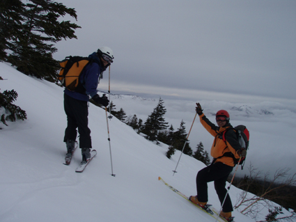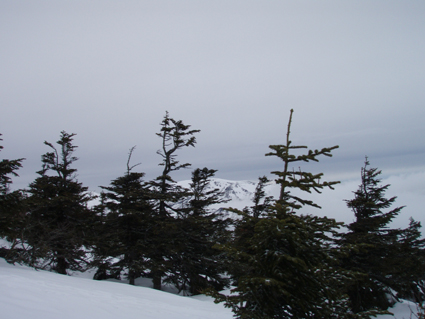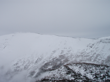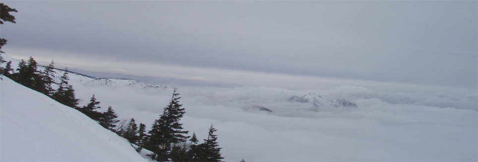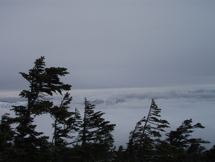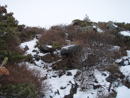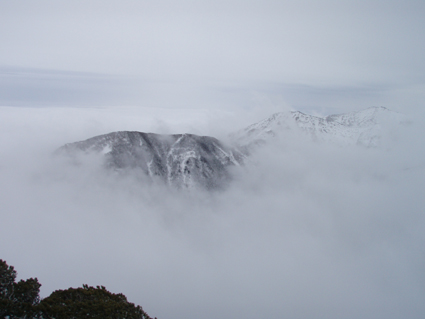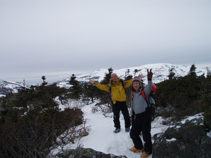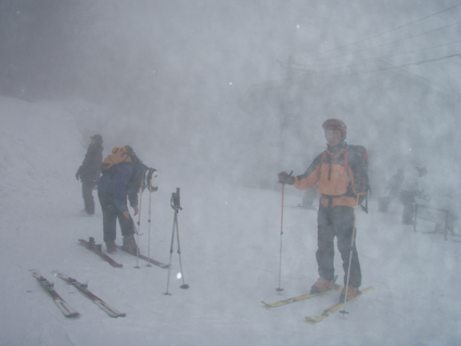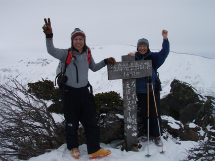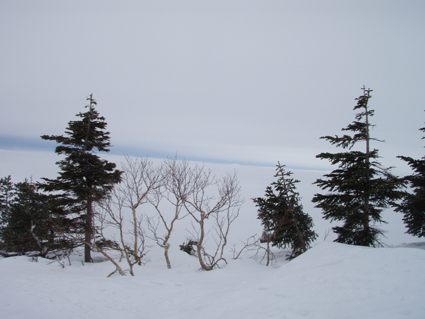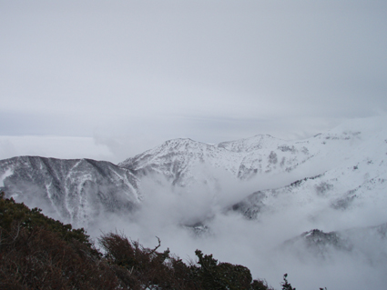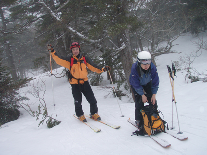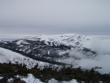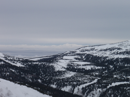 ![]() 雲海に顔を出した名号峰〜雁戸山方面 東北道を北上するも車窓からの天候は雨・・・雨・・・・雨・・・です 白石ICを出て烏帽子スキー場に走る車には小雪がパラパラ 雨から解放されたと喜ぶも ゲレンデに到着すると待ち構えてたのは濃いガスでした・・・・(苦笑) しかし烏帽子岳は私達を歓迎してくれたのか! ゲレンデTOPから登り始めて直ぐにガスの上に出た 山腹のオープンバーンを眺めてテンポ良く登り 山頂に着くと・・何と・・・幻想的な景色が広がっていたのです 風もなく穏やかなピークでお決まりの泡を傾け 暫しの寛ぎタイムを満喫いたしました 下りは固いバーンにうっすらと積もった雪が 気持ちいい滑りをエンジョイしてくれます ![]() ゲレンデTOPの案内板 視界不良のスタートです ゴンドラ駅に在る案内板で第三リフトの位置を確認するも ガスで行く先が見えない 仕方なく下りてきたスキー場の関係者と思われる方に乗り場方面を聞き第三リフト乗り場へ。 ![]() 登り始めて直ぐにガスから解放された ゲレンデTOPはガスで被われ視界が10m位か・・・? そんな中を磁石の方位に沿って登り始めた(GPSの機能が前回より不調) ![]() 見事な枝振りのダケカンバ 急坂を登る 登り始めて直ぐにガスの姿が消える どうやら雲上に出たらしい ダケカンバやシラビソの林を気持ちよく登るが・・・ 風がないために暑く メットを外しても汗がタラタラ流れ出す始末だ ![]() 道標が見える 林間から熊野岳 時々ガスが流れるが視界を遮るほどではない 林間からは熊野岳が姿を現し西の方面から明るくなり 東へと流れるガスが雲海に溶け込む様子が面白い! ![]() 後烏帽子岳 南蔵王の稜線 山頂に着いた私達は幻想的な絵が広がる雲上の世界に飛び出し 息を飲み込み展望を追う あれが・・・・あそこに見えるのが・・・沸き上がる雲に風景が次々と変わる ![]() 刈田岳〜 熊野岳 コルに見える朝日岳 北西方面に刈田岳〜熊野岳がコルの奥に輝く白い峰は朝日岳か・・・? 耳を澄ますとカンカンカンと鐘を叩くような音が聞こえてきた 澄川スキー場から出てる樹氷原ツアーのキャタピラー車が走ってる音である 私達が前回いったときにはホワイトアウトで途中撤退でしたが今日は視界良好です 樹氷原ツアーは樹氷が無くては只の雪原ツアーに成ってしまう 遠望に見える木々は全て黒く見えるが樹氷は残ってるのか心配な一コマでした・・・(笑) ![]() 山頂から眼下を覗く 馬ノ神岳方面の展望 眼下には蔵王山岳会の山小屋が見え澄川源頭から上部は真っ白い山肌が連なるが 目線を下流に移すと次第に白から木々の色に変わり移りゆく季節の境目を見ることが出来ました。 ![]() 屏風山 ガス沸き上がる風景 南蔵王の稜線はまだまだ厳冬期の衣を纏ってる ピークから見る景色は東に雲海〜西はガスが切れて遠望が〜北に山々が頭を出し始め〜南はガスが動き 360°変化に富んだ展望が山頂の私達を金縛りにした 「凄い風景が広がってた」 ![]() 山頂の様子 南屏風岳〜不忘山方面 山頂の一部は岩が出てて強風にさらされたピークは荒々しく神々しくも映るのでした ![]() 山頂は岩が出てます 山頂(Haruさん〜Gonちゃん) 私達は穏やかなピークをなかなか離れることが出来ません 今までこんな烏帽子岳の山頂があったかと思い出すにも記憶がない様な過ごしやすさを味わう ![]() 下山前のSei〜Haruさん 平に見える(雲海です) 山頂直下で昼飯にした 目線には此処は平地と錯覚するような雲海が広がってます ![]() 漂う雲海 急斜面でポーズ(Gonちゃん〜Haruさん) 雲海に頭を出した峯々を眺めて楽しい滑降が始まる 急斜面で止まり遠望を見ると雁戸山越しに鳥海山が鎮座する姿を発見した 富士山の遠望を見るような尖りと醍醐味はチョー素晴らしい展望です 宮城蔵王バンザ〜イ 雨の予報を吹っ飛ばしてサイコー 絶景に酔いしれた烏帽子スキーツアーでした ![]() Gonちゃん Haruさん ![]() Sei ![]() Gonちゃん Haruさん 雨にも負けず 風雪にも負けず 山歩きをしてると良い事がありますね! Haruさん Gonちゃん 天候に惑わされずにまた来ましょうね ・・・SEI・・・ 戻る |