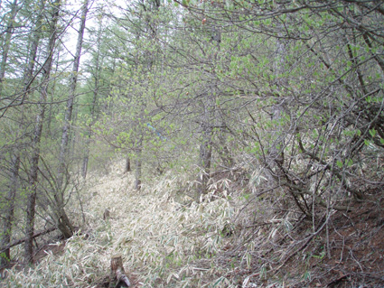 ![]() つぼみが膨らんだ 唐松の新芽 所用で栃木県へ 其処で・・・月末の下見と言う事で・・・ 先月訪れた丹勢山へ一つ走り 蕾も見れなかったツツジは大きく膨らんでました ![]() 新緑の木々 藪道 沼ノ平に在る分岐まで車で行き一周コースを回った (時間制約在り) ![]() 登山道の様子 山頂直下に在ったタラノメ 先月と違い緑に変わる山肌・・・ 登山者には会わないが山菜採りで山に入ってる人が多かった ![]() ムラサキヤシオツツジ 花びらが落ちてる ムラサキヤシオツツジは盛りが過ぎて花が落ちてます 長靴で足早に歩くSeiの足下にはピンクの花びらが! ![]() 山頂 誰も居ない山頂 ムラサキヤシオツツジが山肌を飾る 山頂近くにあるヤシオツツジは色が鮮やかでした ![]() ボケの花・・・? 分岐 林道を駆け下りるとボケの花が咲いてます ![]() 林道の様子 野鳥が寄ってきました 登りは笹の藪道を上り 下りは林道です そこに黄色い色の小さな野鳥が寄ってきましたデジカメで此処まで撮れたのは初めてだ!(嬉しい) ![]() 古河電工社宅のツツジ 先月訪れた時に車をデポした古河電工社宅のツツジはご覧のように盛りです しかし山菜採りをしてた地元の方に丹勢山のツツジはいつ頃盛りか聞きましたところ 二週間後との事でした。 戻る |