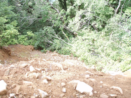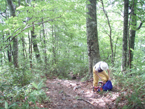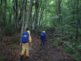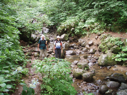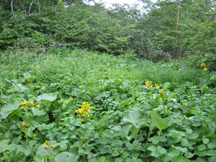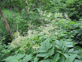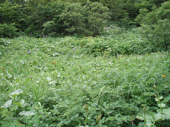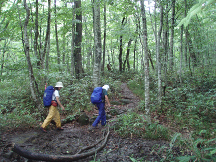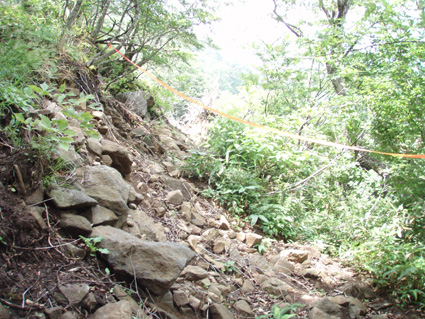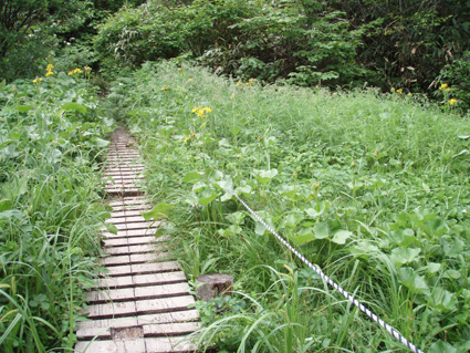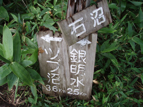 ![]() ツブ沼登山口 大雨の中を! 十数年ぶりに焼石岳に来ました 覚えてる面影はなく胆沢ダムが出来て道路が変わり林道入り口が解りません 石淵ダムの湖岸を回り秋田方面へ車を走らせ進むも林道入り口は見つからず 胆沢ダムを行ったり来たり近くに人も居ません(山の中だからね!) 登山開始予定時間を2時間半遅れてAM9:30 スタートしました ※此処でお話ししますが予定してた登山口は中沼コースです (現在は地震による崩落で通行止めでした)・・・・苦笑 ![]() 降りしきる雨 ブナ林 雨が上がりました 気を取り直してツブ沼コースから出発です 往復の時間は8時間係るこのコースをAM9:30スタートでは先が見えたようなもの・・? 大雨の降る中を急な階段で出来た道を登るとブナ林が広がる山肌が現れた 雨具を着て歩くには堪える温度で体中から滝のように汗が流れ落ちる 歩き始めて一時間ほどで雨も上がり小雨がぱらつく程度です それではとウエアを脱ぎ進む事にした ![]() ウエアを脱ぐSu−さん ブナの肌が綺麗だ! ブナ林には時折日差しも差し込むこともある ![]() 道標 泥んこ道を進みます 登山道は至る所で通行不能な泥場が在り、構わず進むと登山靴の踝まで潜る 私達の姿は田んぼの中を歩いてきたような汚れ様だ。 ![]() 金山沢で涼を! 金山沢で靴の汚れを落として顔を洗うなど少しの時間を取った 靴の汚れを落としても此処から先が凄いことに成ってることなど 私達は知る余地もなかったのです・・・(苦笑) ![]() 仮面のようなコブを発見 遠望に焼石岳の稜線が見えた 石沼まで来ると初めて見た綺麗な花が咲いてましたが時間がないと帰りに撮ることにした 遠望には焼石岳の稜線もガスの中から見え隠れしてる ![]() ![]() 石沼の道標 経塚山・・? 少し天候が好転してきたようだが相変わらずガスと小雨がぱらつく登りです ![]() 地震で崩れた崖 石沼 沼の周辺は崩れた場所が多く 登山道にも亀裂が入ってて2年前の地震の凄さが此処にも表れてました ![]() 獅子ヶ鼻岳の稜線 間もなく銀名水です 中沼コース合流地点から銀名水方面へ進むと空けた場所が現れ 横岳に連なる稜線が視界に飛び込んで来ました ![]() 銀名水に在りました水酌 銀名水 銀名水に着くと早速美味しい水を頂きます そこには頑丈な作りの水酌みが置かれてて1995/7の刻印が打たれてた ![]() 銀名水避難小屋 小屋で会いました皆さんと共に! Gonちゃん〜○○さん〜指導員のSugawaraさん〜○○さん Su−さん〜日本野鳥の会(北上支部)のSuzukiさん 皆さん短い時間でしたがご一緒させて頂きましてありがとうございました 来春にリベンジいたしますのでよろしくお願いいたします。 ![]() この花は・・・? 綺麗・・・初めてSeiが目にする高山植物でした。 ![]() 此処で時間切れ下山でした 小屋や周辺で50分の休憩を楽しんだ私達は山頂へ行くのを諦めてPM1:10下山開始! ![]() 登山道案内板の前で(Sei〜Su−さん〜Gonちゃん) なごりを惜しみ来春のリベンジを誓い銀名水で記念撮影です ![]() 木道の両脇はお花畑でした 山頂のお花畑は凄いことになってる、など見れないお花畑を語り・・・ 私達は木道を下り始めた ![]() トウゲブキやアヤメ等々多くのお花さんが同居してます ![]() 分岐にあるルートマップ 巨木ごとなぎ倒した崖 ルートマップを見てツブ沼コースと中沼コースの違いを確認した 来春は中沼コースが再開通する予定の様です・・? 今度来るときにはリサーチを確実にしてからと反省のSeiでした・・・(笑) ![]() ![]() 焼石岳のピーク方面を望む! 崩れた爪痕・・・? ツブ沼まで降りて開けた方位を眺めると崩れた山肌が剥き出しに成ってるところが在り これも二年前に地震の爪痕なのかなと規模の大きさを知ることが出来た ![]() 胆沢ダム トウゲブキの咲く斜面 下山して397号線の途中で止まり胆沢ダムを写真に納めた 道路からは巨大な工作物も見える、それは山を削りダムの石積に使われた粘土を運ぶ運搬用の通路です 山は平になり一山が消えたと聞きました。 「ひめかゆ」のロッジに泊まり前泊し・・・ 胆沢ダムを行き来した今回の登山は反省もあり出会いもあり楽しい思い出の二日間でした Su−さん Gonちゃん 8月の黒部も楽しみましょうね! ・・・Sei・・・ (動画) 大雨の中をツブ沼口から登り始めた 早朝のアクシデントで予定時間を2時間以上遅れての出発だ! しかし道中のお花さんや銀名水避難小屋での出会いなど楽しい時を過ごす事が出来ました 戻る |