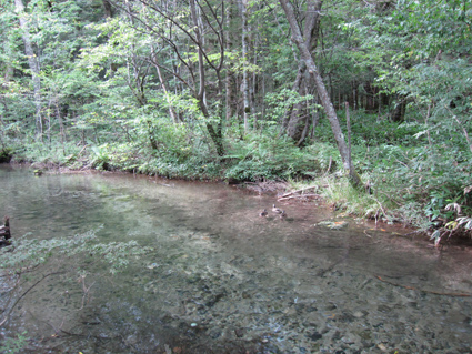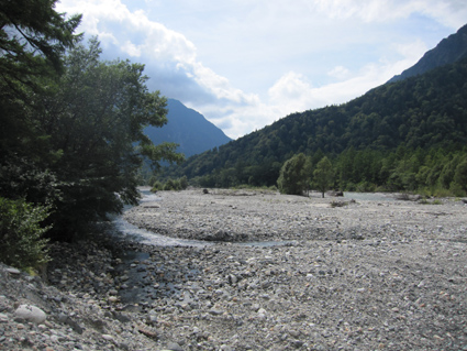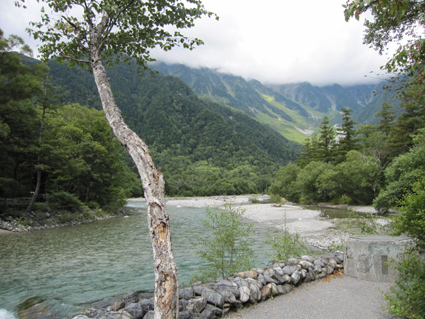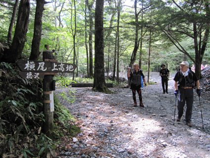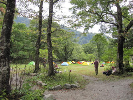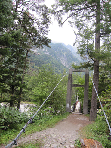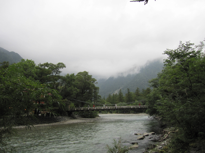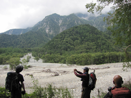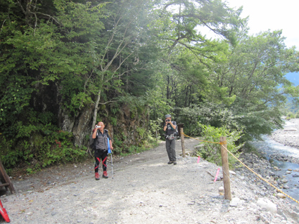 ![]() 河童橋 二泊三日の山旅が始まる 18日の早朝に福島を出て6時間・・・上高地に着く・・・ 河童橋を眺めて頭を空の方へもたげると、見えるのはガスの係る裾野で、山々は雲の中だった ![]() 梓川支流 明神山 歩いてるとガスが飛び明神さんが顔を出した ![]() 徳本峠分岐 梓川 アルプスの山々に続く登山道を横尾方面へ進む 連休のためか登山者が多く、人人人の繋がりを見て歩く 流石に北アルプスですね! 横尾へ 崖崩れで仮設路を進む! 梓川沿いの遊歩道にはキノコ(毒)が至る所に顔を出してます 小さなキノコを見つけたり、見え隠れしてる山のピークを覗いたりのんびりと足を進めた 徳沢手前の崖が崩れて工事中の場所があります 広い河川敷 カモの昼寝・・? 広い河川敷には流木がたまり、山から流れ出した砂利も森林の床を埋め尽くしてる箇所が見られる そんな変化が見られる清流の岸には優雅に寛ぐカモの姿が・・・ イワナの住む川 徳沢 イワナの泳ぐ姿が流れに身を任せて、ゆらゆらと気持ちよさそうな! 変化する景色と時間が流れれば 何時のまにやら徳沢に着きました 徳沢のテン場 道標 徳沢のテン場は賑やかです 此処に野営する人たちは山に行くのでしょうか・・・それとも・・・ 新村橋 穂高岳は雲の中 新村橋に着いて メンバーに話す 下山は此処に出てきますと。 雲に邪魔された屏風の頭を眺めてシャッターを切るHaruさん 道標 横尾山荘 歩き始めて三時間 今日のお泊まり場所である横尾到着だ! 宿泊手続きを済ませて一番最初にお世話になるのが、またまた此です(泡が何故か手に在る) 続いて赤ワイン〜日本酒と・・・ その後 お風呂に浸かります そして私達は案内された綺麗な部屋と二段ベットに寝床を準備した ![]() 横尾大橋(Gonちゃん〜Ariさん〜一匹さん〜Sei) 寝る前に横尾大橋で闇探索を試みて眠りにつきました 早朝より福島を出て、沢渡へ到着上高地に入り梓川沿いを横尾まで辿った記録です。