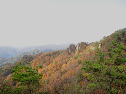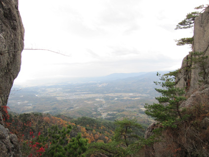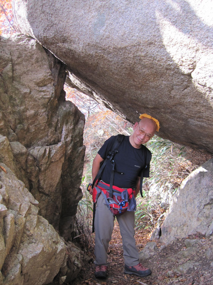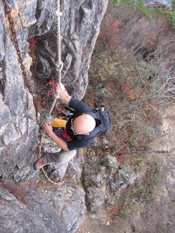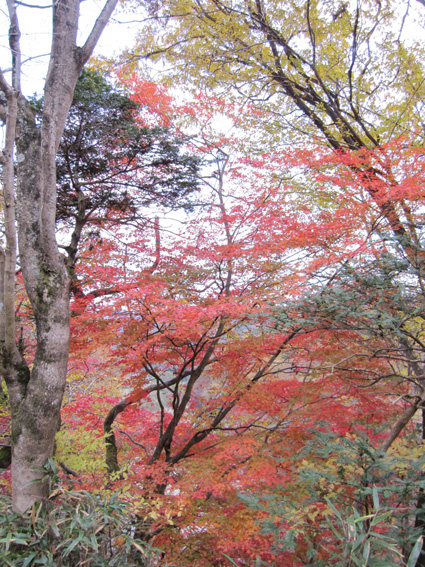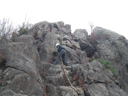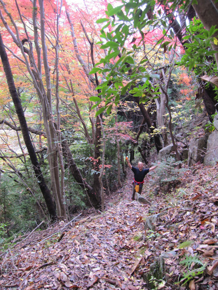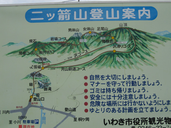 ![]() 稜線から見る男岩〜女岩 久しぶりに二ッ箭山へ行ってきました 雨の予報に・・・行く先を決めないで居たので近くの山を選ぶ! 板岩から鎖場を登るコースへ 半袖で登れる陽気に汗が吹き出た 此処の場所は変化があり私は好きです 下山後は夏井川渓谷のモミジ狩りを楽しんで帰路につきました ![]() 看板前で!(Sei〜Gonちゃん) 林道に在る看板 ![]() 駐車場にある案内板 月山分岐のSei 50台は止めることが出来るだろう大きな駐車所に着いた 其処には解りやすいコース案内板があります 板岩から胸突き八丁を上り鎖場へ・・・ ![]() 沢分岐 登山道の落ち葉 登り始めは杉林の道を進む! 暫くすると落葉が絵になる登山道へと続きます ![]() 盛りの紅葉 渓流沿いにあるモミジが鮮やかに映える ![]() モミジの中を登る 気軽に楽しめて豪快な岩が待ちかまえる二ッ箭山は紅葉も真っ盛りだ! ![]() 板岩コース(岩場) 岩コースの渓流は水が足りねいのか流は静かである ![]() 岩コースから尾根へと登ります 岩場から尾根筋に変わればアセミの木が賑やかになってくる。 しかしSeiのカメラ記録がカードエラーで写真をアップ出来ないのだ・・・(苦笑) データを取り出すことが出来れば後にアップしようと思います ![]() 豪快な男岩 女岩へ登るGonちゃん 麓からも見える岩峰は迫力満点の男岩です ![]() 女岩に掛けられた鎖&ロープ 広がる展望 此処の鎖場を登れば女岩のピークに出る ![]() 殆ど直角の鎖場 此処の鎖場はチョット気が抜けない場所でもあり楽しい通過地点でも在ります ![]() 稜線より広がる景色 男 岩 稜線に出れば展望も良く眼下の景色も一望できる 岩峰のピクから二ッ箭山山頂へ行き昼飯と成りましたが・・・? 山頂の記録写真もSeiのカメラからデータが取り出せず在りません 今回の記録は全てGonちゃんの物で在ります。。。 ![]() 岩を頭で持ち上げるSei 鮮やかなモミジ この大きな岩を頭で持ち上げようとタオルを頭に載せて頑張りました ![]() 月山に祀られてる祠 遠望の岩峰 月山に祀られてる祠の反対側には展望場が在り二つの岩峰を望む絶好の場所でした ![]() 展望場のSei 下山です 何故かSeiの姿が多い今回の記録・・・? ![]() 夏井川渓谷の紅葉 下山後は夏井川渓谷のモミジ狩りを楽しんで帰路につく Gonちゃん記録写真有り難うございました ・・・Sei・・・ 今回の動画はSDカードの不具合でSeiの記録をUP出来ませんでした 全ての写真&動画はGonちゃんからお借りした物であります 動画をご覧くださいね! 戻る |