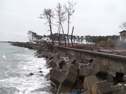 其処は思い出すにも思い出せない光景に変わり果てて居ました しかし港は復旧に加速してる様子を伺うことが出来て働く人も元気です、 お店には鮮魚が並び観光客で賑わってます ガレキも撤去が進み被災した建物を修復して開店したお店も多く駐車場も満杯でした 岩井崎に在った知人の宿は流されて土台しか見ることが出来ない、 しかし流失した船も見つかり、ご主人が漁に出てると聞き感激です 皆さんの底力を見てSeiも力が涌きました ![]() 気仙沼 陸に上がった船 気仙沼港は活気があります 鮮魚を運ぶリフトが忙しく動き、荷積みのトラックが並び積み込みをしてた 地盤沈下した道路は砂利を敷き、かさ上げされた道を車が走る ガレキの撤去が進み 港近くのコンビニや食堂も開店してました ![]() 市場に並ぶ鮮魚 小雨降る露天にも係わらず外に並べられた鮮魚を買い求めるお客様が多い 大きな声で「いらっしゃいませ」気持ちの良い響きがこだまする ![]() 港のカモメ 電柱に寄り添う船 打ち上げられた船やガレキも残る港ではあるが・・・ 復旧が加速されてることを感じ取る事が出来ました 毎年訪れてた観光市場は柱が剥き出しになり賑わってた面影は無くなってたが 必ず 震災前の賑わいが戻ってくることを信じて港を後にしました。 ![]() 岩井崎海岸 地盤沈下した防波堤 気仙沼から移動すること30分あまり 岩井崎へ訪れる 其処は変わり果て地形を思い出すことも難しい 知人の宿が在った場所に行くと流されて土台だけが残ってた 近くの宿も流失して形が無くなってます それでも隣の宿が鉄筋作りの為でしょうか形が在りました 宿のリフトだけが広い曳地にポツント置かれてるのが印象に残る ![]() 積み上げられたガレキ 波消しブロック 毎年釣りを楽しんだり潜って魚を捕まえてた海岸は・・・ 海に迫り出して作られた防波堤は地盤沈下のためか海面が堰堤の高さまで上がってます 船が繋留されてた場所も海水が迫ってました ![]() 絡み合う漁網 なぎ倒された松の木 波消しブロックに打ち上げられた漁網や流木も海岸線へ 防風林の松の木は尽くへしおられて根元だけが剥き出しになってました ![]() 骨組みが残る工場跡 大谷駅脇の民家跡 海岸線の工場は骨組みを残して無惨な姿に! 国道脇の民家らしき土台も上物は何も無くなってます 岩井崎海岸を後にして国道45号線を上り大谷駅まで来ると食堂が在りました 腹がへって飛び込んだお店です ![]() 知人の弟さん 弟さんの食堂 飛び込んだお店で話をしてると、聞き覚えの在る声が奥から聞こえるではないか! 聞き慣れた声のはずだ! 何と声の主は私の知人の弟さんでありました 事情を説明すると、直ぐに解ってくれて宿の現況を聞く事が出来た 民宿のご主人が持ってた船が流失して仕事も出来ないでいたが、何と船が見つかったそうです 今では漁に出て元気に仕事をしてることを知りました・・・感激です・・・ また近いうちに訪れて元気に漁をしてる姿を見に行くことを心に誓う 被災地東北の力強さを実感できた一日になる 動画をご覧くださいね! 戻る |
