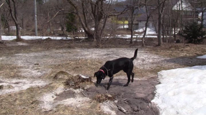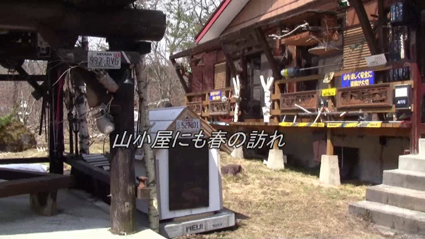 川上温泉に在る山小屋に行くと雪解けが進み地面が見えるように成ってきた