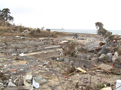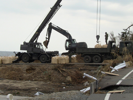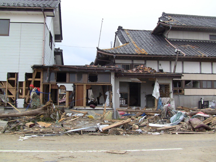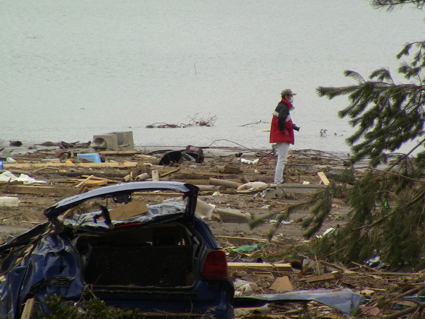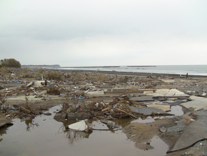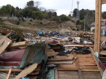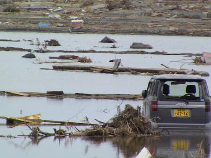 ![]() 港町が消えた 南相馬に住む知人に会うため早朝より出かけた 115号線を走り相馬に近づくと倒壊した建物や地割れした道路が目立つようになる 6号線を南下して南相馬に入ると、国道の両脇には流されてきた船が散乱してた 知人宅を訪れて海岸方面に案内してもらうと 家がつぶれ道路が流され鉄塔が飴細工のように曲がり堤防が消滅してる 近くには彷徨う犬の姿や、牛の親子が寄り添う様に悲しい顔をしてました 一面に広がるガレキの山を、警察や消防団が横に並び行方不明者の捜索をしてます 重機で道路に在る漂流物をかき分け、自衛隊の車が慌ただしく動き道路を造ってた 津波の力は計り知れない、家を土台ごと道路に運び車は形が在りません 高台にある家は何事も無かったかのように建ち 道路を挟んで下方の家は残材と化してる 明暗を分けた地形が数メートルの狭間に爪痕を残してました 被害地に足を運んでみると、地元住民は見えない敵に恐れることなく 捜索活動や後片付けに明け暮れ関係各所と力を合わせて動いてます! ただ物流がストップして生活が出来ない、食べる物も医療機関も何もない・・・ 街に人が居なくなってしまったと漏らす 本当は町を守りたいと。 被爆を恐れて町から離れるのではなく生活が出来ないから離れるので メディアは正確に報道してないとも! 間違った報道が物流をストップさせ、人を遠ざける南相馬は危険では無いと言い切る もともと人口が少なく大きな産業がないこの地は、此からどうなるのか・・・? 腹を出した車を指さし 被害者が語る「もう何もやる気が起きない」 報道されない部分の福島県(南相馬市)の様子です。 ![]() 車の持ち主は今! 打ち上げられたガレキ ![]() 漂流した人形 奥に見えるのは火力発電所 ![]() 漁港の建屋か・・? 無惨な姿の家 ![]() 道路が流され 海水が貯まってる住宅地 ![]() 此処は池ではない住宅地です 海岸線の様子 ![]() 津波に飲まれず残った塔と建物 ![]() 形のない家が残骸となってしまった。 ![]() 自衛隊が海岸線を補強してた 消えた道路 ![]() 家の基礎が道路に! 寸断された道 ![]() 此処には多くの住宅が在りました 倒れた電柱 記録ー1 記録ー2 記録ー3 東日本大地震から15日目の南相馬市の記録です 町は孤立して人影もなくガレキの山と化した住宅地では捜索隊の姿が・・・ 寸断された道路、打ち上げられた船が陸に運ばれ、形のない車が点々とし 原発の影響で物流が途絶えた地は、もはや人が住める状態ではない。 残ってた住人は苦渋の決断で街を離れるしかないのだろうか! 戻る |