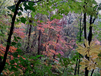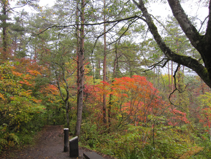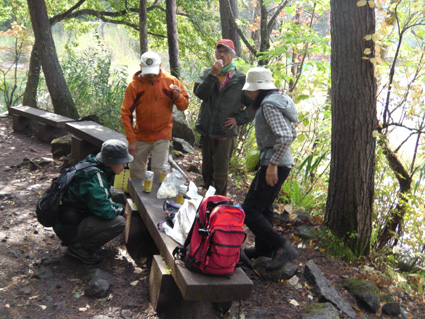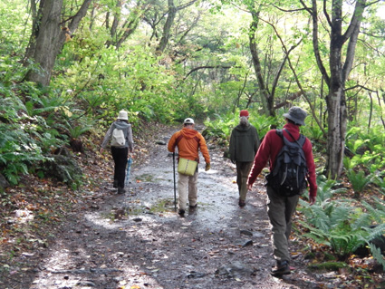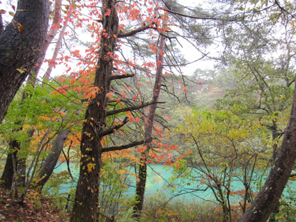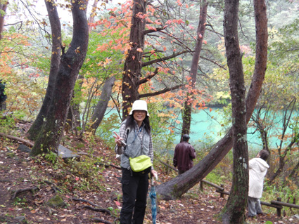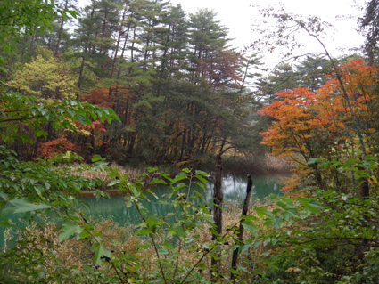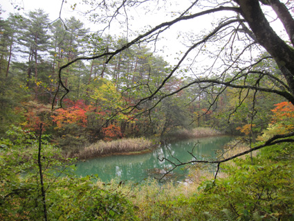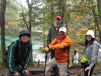 ![]() 五色沼(弁天沼) 雨の中を出発するメンバーの足取りが重い 川上温泉を出て五色沼を巡り459号線を戻る予定で出かけた・・・ 五色沼に着くと雨も上がりハイキングには持ってこいの空模様に変わる 沼に映る色とりどりの景色が素晴らしく磐梯山も雄々しく見えた 柳沼の辺にあるレストランで食事をして459号線を川上まで戻る予定だったが・・・? ![]() ツタウルシの紅葉 スギタケモドキ 川上温泉の青沼に綺麗なツタウルシを見つけた そして国道を五色沼方面へ進むと柳の木に並んだスギタケモドキが出来てる 「ん〜〜 届かないな!」 と 諦めたのだった。 ![]() 毘沙門沼 縁取る紅葉 毘沙門沼は凄い人です 錦鯉が泳いでる雨上がりの沼に映る紅葉は少し霞んでました ![]() Gonちゃん・Atuさん・タッシーさん・一匹さん・Sei 雨も止み、少しずつテンションが上がるメンバーです ![]() 五色沼・・・? 一休み(一匹さん・Atuさん・タッシーさん・Gonちゃん) 沼を巡る道はハイカーで混み合い街中を歩くようです コースには案内板やベンチが多くあり人混みを避けるように私達は休憩を取りました ![]() 多くの沼が点在してます 未だ色着かぬ木々 見事に染まる水面 ![]() 水面に映える木々の色つき! 灰色の空にブルーの沼と木々が際だってた ![]() ハイキングコースは整備されて歩きやすい 福島にいて五色沼を巡ったのは初めてのSeiでした・・・苦笑 (途中まで散策は在り) ![]() ハイキングコースの木々は紅葉が始まった処だ! 未だ色つき途中と思われる木々は緑の葉も多い! ![]() 沼の表情は一つ一つ違います 大小の沼は幾つあるのか・・・? 地図上で見る限り20数個のように思われる ![]() ブルーの水面に映し出される景色 休憩です ![]() 松の木が目立つ五色沼 腹減った(泡タイム) 正午になるとお腹も空き喉も渇きます ハイキングコース終点まで此では保たないと泡を片手にマイタケご飯を頂くのでした ![]() 間もなくハイキングコース終点 柳 沼 柳沼で最後の沼巡りです 駐車場に在るレストランでラーメンを食べて459号線を歩いて川上まで戻る予定だ ![]() ヤマブドウ 噴火記念館前(Gonちゃん・タッシーさん・Atuさん・一匹さん) 道ばたにあるブドウのツルを見上げると団子状に房が見える 少し頂きましょうとタッシーさんがウルシ(かぶれに弱い)を物ともせずに 勇気を振り絞り熟成した粒をたぐり寄せ口に含んだ ん〜 美味い! そのご舗装道路を歩きながら時計を見ると既にPM2:00になる処です 歩いて帰ると後一時間半はかかる ではバスに乗るべと全員一致の答えが出て路線バスを待つのでした。 楽しい五色沼巡りに参加したメンバーは Atuさん・タッシーさん・一匹さん・Gonちゃん・Seiでした 皆さん有り難うございます 戻る |