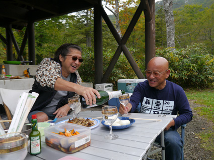 ![]() 八幡平 大沼キャンプ場 ![]() テーブルのGonちゃん・一匹さん・タッシーさん・ヒロ坊さん ヒロさん〜Sei テント設営完了と同時に飲み始めるメンバー ![]() タッシーさん・ヒロさん・Sei・Gonちゃん 炭を熾すタッシーさん 設備の整った大沼キャンプ場で旨い酒を飲む! ![]() テントサイトのキノコ ツタウルシ キャンプ場の秋色は素晴らしくカメラ小僧がいっぱいでした ![]() 大沼散策に出かけます 一匹さん・Gonちゃん・タッシーさん・ヒロさん タッシー&さくら 大沼のクサモミジが鮮やかです ![]() 大沼を一周した ![]() 木道に咲くリンドウの花や色付く木々に歓声を上げて探索を楽しんだ ここはクマが多く出るらしく「クマ注意」の看板が多い ![]() 後生掛温泉 蒸ノ湯 キャンプ場近くにある温泉を巡る ![]() ヒロさん・一匹さん・Sei 一匹さん・タッシーさん・Sei・ヒロさん 露天で遊ぶメンバー ![]() 混浴の露天風呂 泥を塗ったタッシーさん 混浴の着替え場は別々だが風呂は一緒だ ![]() ホットサンドを作る(タッシーさん・ヒロさん) 此方はGonちゃん作です ホットサンドは手軽に出来て美味しいです ![]() ホコリタケを炒める 包んで出来上がったオムレツ ホコリタケを炒めて卵で包む 歯ごたえのある食感でキノコの味は薄いが初めて食べたホコリタケに笑みが浮かぶ! おもしろコマ送り動画! キャンプ場に着いてからテント設営〜それからの動画をコマ送りして撮影した記録です 動きが実に面白い! キャンプ&散策&温泉動画! 八幡平に在る大沼キャンプ場を拠点に焼山登山やキノコ採り・温泉巡りなどを楽し見ました 動画はキャンプの様子や後生掛温泉・蒸ノ湯・玉川温泉の記録です 戻る |