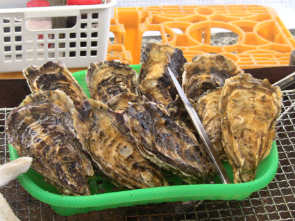 ![]() 万石橋(此処を渡ると牡蠣小屋が在ります) 石巻 渡波にOPENしました 「かき小屋」の記録です ![]() 小屋の大漁旗 ホタテ殻(養殖用かな・・?) お店は凄い人混みでした 元気の良い漁師さんの動く姿や、寒空の下で牡蠣を造ろう人達の笑顔が素敵です ![]() 漁港の様子 万石橋 復興へ取り組む漁師さんや地元の方々の元気な姿に笑みがこぼれた 寒空の中、忙しげに動かす手にはワイヤブラッシが握られ手際よくカキ殻の異物を取り除く 少し離れた所ではお姉さんの話し声が聞こえた 「鼻水が止まらない」と囁く! みんな一生懸命に働いてるのです 炭を熾す男性は愛嬌の良い好青年だ 送風機を回しながらホコリが飛びますスミマセンとお客様に話されていました ![]() 生カキ 大粒の身(湯気が出て美味しい) カキの焼き方を教えてくれたお嬢様は笑顔が可愛い みんな素敵な人達です ![]() 12個入りの牡蠣 食べ殻 一人で12個を食べたらお腹がいっぱいです 香ばしい香りと濃厚な味は最高のご馳走でした かき小屋のみなさんご馳走様でした(リンクあり) 動画をご覧くださいね! 戻る |