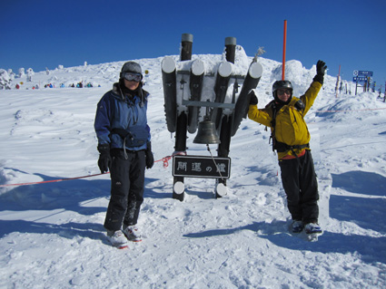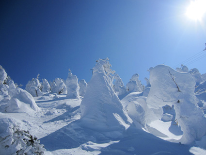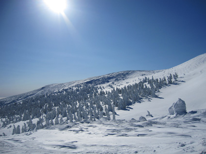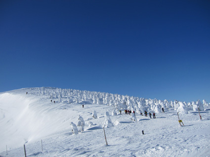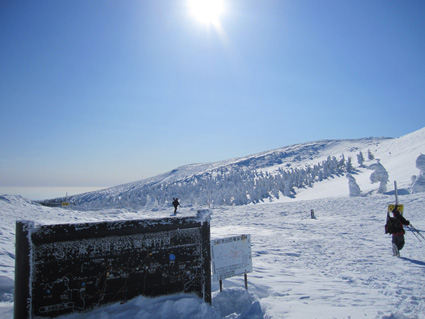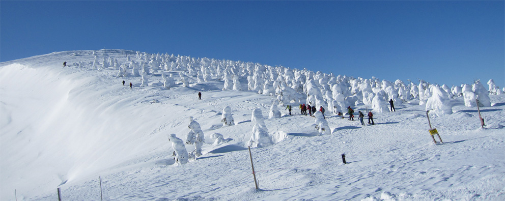 ![]() 地蔵山 (登山者の姿) 数十年の間に5回以上は来た場所、山形蔵王スキー場 今までにない好天に恵まれました 青い空に地蔵の輪郭が浮かぶモンスターも元気です 晴天無風に訪れた白い森には笑顔の花が咲いてる 登山者や滑家さんも気持ちよさげに寛ぐ、四方に動き回る姿は喜びを体で現してました。 ![]() モンスター 開運の鐘 山頂駅モンスターの迷路を探索したり開運の鐘や肩まで埋まったお地蔵さんと写真を撮ります ![]() 山頂駅の案内板 地蔵北斜面のモンスター 滑りに来た私達ですが暫く山頂で寛ぎタイムを過ごしました ![]() 山頂のお地蔵さんんは肩まで雪の中でした 頭を出したお地蔵さん 何故かお賽銭箱は雪に埋まることは無いのです ![]() 山頂駅の様子 透き通る青い空と白い森のモンスターがコラボした風景は圧巻です ![]() 白い森のGonちゃん 飯豊山(遠望の白い峰) 山頂からの遠望には飯豊山や朝日連峰〜月山〜鳥海山の尖りが視界に入る ![]() ザンゲ坂のモンスター ロープウェイ コース脇には大きく成長した雪の造形を見る ![]() まだまだ元気なモンスター 三宝荒神山 今までコースを滑りきったことが無いので始めて見る景色が多い 鋭い壁の三宝荒神山の迫力に魅了された ![]() 地蔵方面 朝日連邦の白い峰 中央山頂から見る展望も感動の連続です ![]() コース内に在る露天風呂入口 眼下の露天風呂 コース内にある露天風呂は冬期は使用禁止なのか・・? 入ってる人の姿は無かった・・・(笑) ![]() 鳥兜山 山頂 展望台 中央山頂に位置する鳥兜山へ寄り道です 展望も良く夏山登山の絶景場所と見受けました ![]() 昼寝のSei 鳥兜山 山頂 時間はPM12時を回ってた 眠くなったSei青い空と白い景色の中で深い眠りに入る 何処からともなく 「おーい おきろ〜」 と聞こえる声! あまりの気持ちよさに夢見心地でした。 ![]() 龍山ゲレンデ 飛行機雲 全てのコースを滑りきる予定でしたが籠山ゲレンデに行くことは無かった 次回は必ずと斜面を眺める。 ![]() 横倉のカベ カベコース 横倉のカベを滑るかと行くがアイスバーンと噂の斜度に撃沈です 次回 次回と飛び出す合い言葉が一人旅でした・・・(笑) ![]() トニー・ザイラー顕彰碑 ザンゲ坂にて! zaouスキー場 HP より抜粋 ↓ 「トニー・ザイラーは、昭和35年に松竹映画「銀嶺の王者」ロケーションのため蔵王温泉を訪れ 動画をご覧くださいね! 戻る |