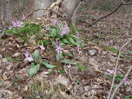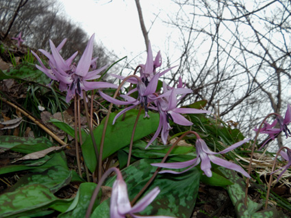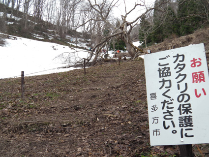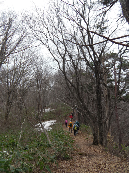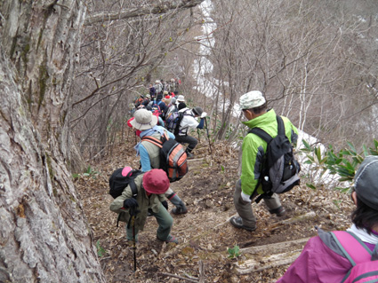 ![]() 鳥屋山 山開きイベント会場 会津坂下町に在る鳥屋山(とやさん)の山開きに行ってきた 漆窪登山口では山開きイベントが開催されて登山者で賑わってます 阿賀川を渡り部落の中を通り杉林を過ぎるとカタクリの姿が見える 登山道脇には雪も残り風が冷たく感じた 山頂までは2時間半くらいで着きます 下山は林道を下ったが此が幸いしてカタクリの群生に会うことが出来ました。 ![]() 阿賀川に係る橋 阿賀川 雪解け水が阿賀川に集まってるのか濁った流になってる 去年の豪雨の為に川岸が抉られて岩が剥き出しになってました ![]() 案内板 ミネザクラ・・? 満開でした 登山口には案内板があり解りやすい! ミネザクラと思われるサクラが満開だ 部落の中を通り集会所を左に見て緩い坂道を登ります ![]() 道ばたのスイセン キクザキイチゲ 民家の在る道路脇にはスイセンの花が可愛い姿を見せた 土手にはキクザキイチゲが未だ蕾の状態で並んでます ![]() 登山道脇にはカタクリが咲いてます 案内板 次第に登山道へと進む カタクリの群生地は縄が張られて養生されてました ![]() 登山道より第2見晴台のピーク 林道と二回交差すると本格的な登山道へ進みます 木々の葉が無いために眺望が良く歩きを楽しめた ![]() 味のある道標 見晴台からの展望 第2見晴台に着くと多くの登山者が休んでる 展望台から見える真っ白な尾根は飯豊山だ!大日岳の尖りも雄々しく鎮座してた ![]() 湧き水への案内板 楢林の登山道 弘法清水は雪の下になってるようだ 尾根筋は風が強く素手で歩いてた為に手が冷たくなり体温が奪われる ![]() 若葉が待ち遠しい木々 山でKenさんに会いました 間もなく山頂と言う所でKenさんとスライドした Kenさんとは荻窪駅前で偶然に会い同じくスタートしたが早い歩きの為に先行したのです いつも元気なKenさん夏でもないのに真っ黒く日焼けしてる・・・(笑) 逞しい歩きは山家さんの姿だ!、アルプス歩きのKenさんと里山で会うとは不思議な感じでした ![]() 山頂 展望案内板 山頂は展望が良く三方に案内板が設置してあります ![]() 360度 案内板 木々が邪魔をしてるところもあるが落葉してる為に今は視界良好だ。 ![]() 登山者で賑わう道 案内板が多く在ります 下山時になっても多くの登山者が登ってきます ![]() 眼下には漆窪の部落が見える 登山道のカタクリ 遠望の山々や足下のカタクリに癒されて楽しい下りになる! ![]() この花は・・? 何回か小さな登り返しが在ります 今年は遅れてるのかタムシバの花が見あたらない コシアブラも芽吹いたばかりで頂くには早すぎました ![]() 登山道のカタクリ & キクザキイチゲ 下山は登山道から離れ林道歩きです ![]() カタクリの群生地 林道にはカタクリの群生地が多くお勧だ。 登山道と2回目の交差した所から左に折れて林道を進むと左右にカタクリとキクザキイチゲの群生が目に入る ![]() 大きな株が在ります 林道歩きは距離が長くなりますが歩く価値は十分にある ![]() カタクリの由来 今日は山開きのために林道は通行止めになってましたが 通常は通る事が出来る 林道を車で来ると山頂まで一時間あまりでしょうがカタクリの群生地を見過ごしてしまう・・? ![]() ショウジョウバカマ 下山道の抽選会場 近県では角田山や弥彦山がカタクリの花が有名だが鳥屋山は勝るとも劣らない お勧めの山でした 地元の方々の山開きイベント開催に対して感謝いたします ・・・Sei・・・ 動画をご覧くださいね! 戻る |