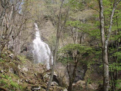 ![]() 銚子ヶ滝入口に在る東小屋 5月20日まで通行止 Loveの運動を兼ねて銚子ヶ滝へ行く 林道終点にあるハイキングコースに車を止めて新緑の山へ入りました ![]() オオカメノキ・・? スミレ 花は少なくツツジやオオカメノキ・・? スミレ ・ ショウジョウバカマなどが咲いてます ![]() ハイキングコースに在る道標 シ ダ ハイキングコース中間地点と思われる所に道標が在ります 山はまだまだ芽生えたばかりの木々の緑だけが目立ち、林間から風景を覗くことが出来た ![]() クマ注意の看板 分岐 分岐まで来ると熊注意の看板在り、此処はクマさんの多い所です ![]() スミレ 滝への下り口 銚子ヶ滝へ降りる梯子の脇には可愛いスミレを見つけることが出来ました ![]() 新緑の奥に銚子ヶ滝 滝は・・・(とっくりの形) 水の音と共に姿を現す豪快な流の銚子ヶ滝は迫力がある ![]() 銚子ヶ滝の全景 ![]() 由 来 滝 壺 汚れた案内板の奥に滝壺がある 近づくと霧が舞え上がりたちまち服がびしょ濡れになります それでも暖かい一日で気になることはなく、しばし滝壺を眺める! Sei ![]() 切れ落ちた鋭い崖 霧が舞え上がる滝壺 滝の左側は真っ直ぐに切れ落ちた崖です 落差48mの滝壺はブルーに輝いてた ![]() 水量が多く感じる Lobeです 同行した愛犬Loveは大喜びです! ![]() 滝壺で泳ぐLove 泳ぎが大好きなLoveは滝壺から離れない・・・(笑) ![]() 何かを見つけたLove 遅咲きのショウジョウバカマ ![]() 滝壺へ降りる階段 落石よけの網 滝壺から階段を上りハイコングコースに出て、新緑の緑に包まれた木々の道をゆっくり歩き戻る 短時間で楽しめる銚子ヶ滝へは「ふれあい牧場」から林道を走り東屋の在る入り口まで車で行けます 母成峠の登山口から入り歩きを楽しむコースもお勧めだ! 今週末の日曜日(20日)がコース開けの様です 新緑の銚子ヶ滝を訪ねてみては如何でしょうか・・・Sei・・・ 戻る |