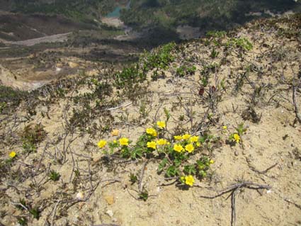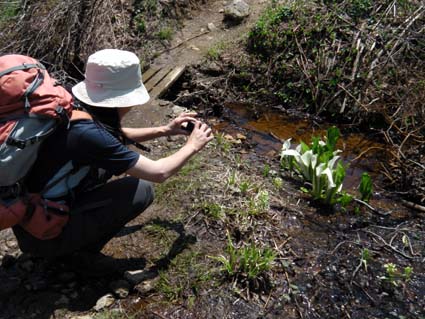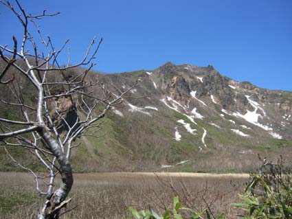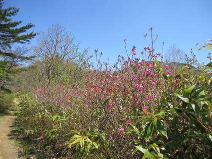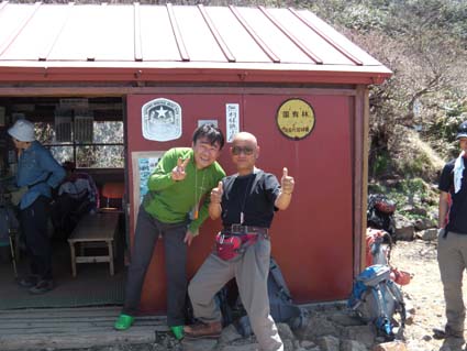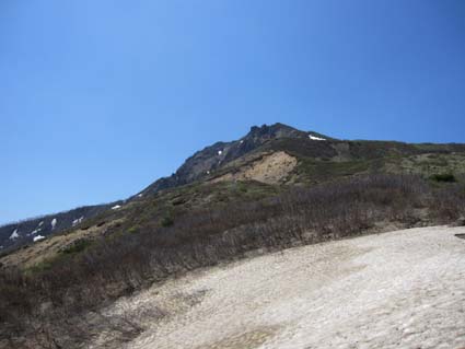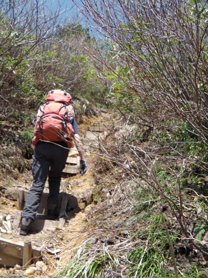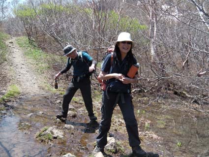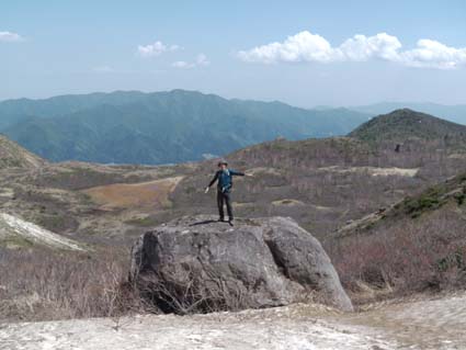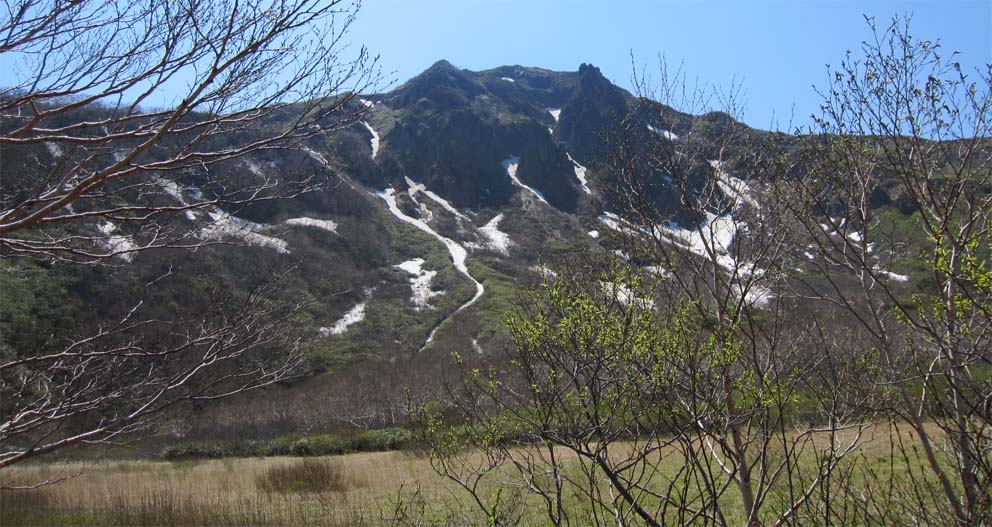 ![]() 裏磐梯山 昨日の山菜オフ会で飲み過ぎたのか足取りが重い ![]() 赤埴林道から登山道へ 猪苗代登山口分岐 林道終点に車を止めて登山道を進むと 直ぐに猪苗代登山口から続く道と合流します ![]() ツツジが咲き始めた ミネザクラ 登山道を彩るツツジは咲き始めです ミネザクラも盛りでした ![]() 沼ノ平から見た裏磐梯 道標にて(Sei〜一匹さん) 沼越しに見る裏磐梯は迫力満点! ![]() あぶねい 咲き始めのツツジ 力が余ってるのか木登りのSei・・・(笑) ![]() インレイソウ ミズバショウ 今年は雪解けが遅く磐梯山の山開きは2週間遅れ 山の花も同じく遅れて咲きだしたようですね! ![]() 雪解けの水が流れる登山道 水溜まりに咲いてる水芭蕉 雪解けの水が溢れ出した登山道 ![]() 沼ノ平 渋谷登山口分岐 石造の道標は沼ノ平 この辺まで来ると木々の新芽は未だ出てないです ![]() ヘリが来た(雲の中に・・?) 沼ノ平 突然現れたヘリが爆音響かせて上空を旋回する 山開きの取材なのか長時間飛んでました ![]() 稜線から磐梯山 残 雪 残雪のある稜線直下に来るとヒンヤリした風が体を冷やしてくれる 晴天の中では有り難い場所ですね! ![]() 銅 沼〜奥に檜原湖 西吾妻山 磐梯山と櫛ヶ峰のコルに立つと噴火壁や銅沼〜檜原湖などが眼下に見えた ![]() 咲いてた花です・・・? 噴火壁と天狗岩 黄色い花は何でしょうイチゴのような葉が付いてます 噴火壁の頂点は天狗岩だ、よく見ると人が岩の上に立ってるのが見える 「おっかなくねいのがな〜」 ![]() 大岩の上に一匹さん 稜線上の道標 此方は大きな岩の上に立つ一匹さんでした ![]() 弘法清水(Gonちゃん〜一匹さん) 山 頂 弘法清水に在る鐘を鳴らして山頂へ行きます 山頂は登山者で大賑わいだ! ![]() Gonちゃん〜一匹さん〜Sei 弘法清水小屋管理人 SIBUYAさん〜Sei 山頂へは30分くらいの休憩で下山開始・・・ 登りに挨拶した弘法清水小屋の管理人 SIBUYAさんに早く会うためです 小屋では美味しいナメコ汁をご馳走になり 泡でカンパイ 忙しい管理人を無理に呼び出して記念写真を撮るSei 此処でしか売ってない「磐梯ミサンガ」を買って! 小屋を後に下山する SIBUYAさん 奥様 ご馳走様でした ![]() 下山前にGonちゃん〜一匹さん ツツジ 磐梯山山開きのペナントを頂き 楽しい登山が終わりました 一匹さんGonちゃん有り難うない! 動画をご覧くださいね! 戻る |