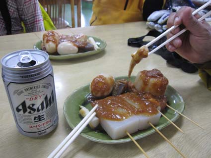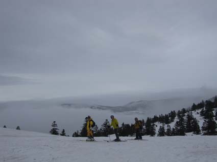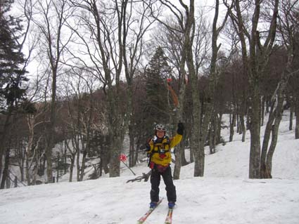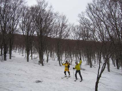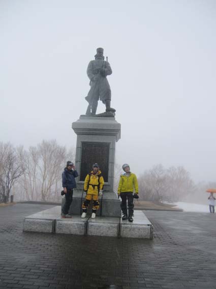 ![]() 北方面の山並み! 5月4日は八甲田山へ、今日も強い雨が降ってます ロープウェイ乗り場は閑散とした 山頂駅では雨も上がり滑降時は小雨程度の空模様に変わり滑りを楽しむことが出来ました 銅像を参拝した後に茶屋により名物おでんを食べる 勿論・・・泡も頂きます・・運転はTakaさんだ!・・・ありがとうね! シャトルバスでロープウェイ乗り場まで戻り 宿へ直行です 途中の業務スーパーで泡を買い込み今日の予定が終了した。 ![]() 山頂駅 ロープウェイ (一匹さん〜Takaさん〜Gonちゃん) ロープウェイ乗り場は強い雨が降ってたが山頂駅に着くと雨が止んでる どうやら雲の上に出たようです ![]() 山頂駅の案内板(Sei〜Takaさん〜一匹さん) 南八甲田山方面 これなら楽しく滑れると登山届けに記入して銅像コースへ ![]() 人影のない展望台 前 嶽 遠望の景色は見ることが出来ないが雪はたっぷりと在ります ![]() 道 標 オープンバーン 田茂萢岳と前嶽のコルに滑り込み振り返ると亀裂が走ってる箇所が見える 少し緊張の場面でした。 ![]() Sei〜Gonちゃん〜Takaさん 良い斜面が続く 1150mくらいのオープンバーンを通過する頃は雨も上がった 雪質はザラメで板は面白い様に走ります ![]() 少しだけ山並みが! 楽しく滑った斜面 今まで来た中で一番雪が多く感じられる斜面 曇り空でも関係なく滑りを楽しみました ![]() 麓のブナ林 Sei 大岳〜井戸岳〜赤倉岳のピークを見ることなく麓まで下る 間もなく周回道路に着く地点です ![]() Sei〜Takaさん〜一匹さん 銅像案内板 Gonちゃん 無事に銅像茶屋のバス停に到着して 雪中行軍の銅像へ行きました ![]() 雪中行軍遭難記念像 「明治35(1902)年、厳冬の八甲田山で起こった雪中行軍の悲劇を後世に伝えるため、 遭難現場に立つ後藤房之助の像。発見時、猛吹雪の中で立ち尽くし 目印となった壮絶な姿が偲ばれる。」 ![]() 銅像茶屋の名物おでん 銅 像 茶屋では名物おでんを食べてから宿へ戻りました いよいよ明日は最終日 皆さん楽しみましょうね! 動画をご覧くださいね! 戻る |