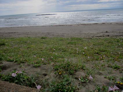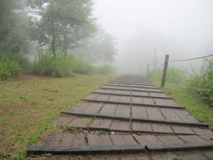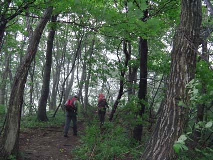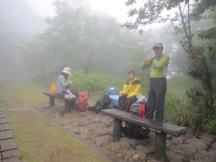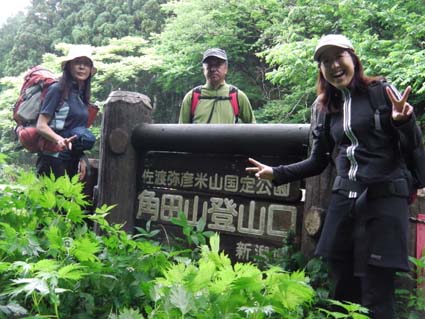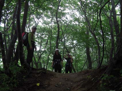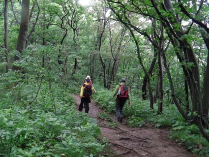 ![]() ハマヒルガオが咲いてた海岸 今日は朝から大粒の雨が降ってます 磐越道を西に、角田山を目ざし走る車窓からは濃いガスが山々にかかり展望のない風景が流れる! ![]() 五ヶ峠登山口 道 標 登山口に着くと雨が上がり急降下のテンションも持ち直し笑顔の仲間が居た 予定としては灯台コースを周回するはずでしたが急遽変更して風の影響が受けにくい五ヶ峠登山口から登る ![]() 雨上がりの雑木林 新緑のトンネル 新緑の木々に強い風があたり吹き抜ける様子は、汗した体に強力な扇風機を回したようで 心地良い風が通りすぎて行った。 ![]() 三望小屋 道 標 通りすがりの避難小屋からは笑い声が聞こえる 登山者が寛いでるのかな・・・? 展望のない稜線歩きより仕切られた部屋で山を語り至福の時を過ごしてる様でした ![]() 登山道は滑りやすい 山頂(Haruさん〜Hiromiちゃん〜Gonちゃん) 途中の休憩を挟み山頂へは1時間三十分で到着です ![]() 道標の前で! 元気いっぱいの仲間は広い山頂を探索します ![]() 休憩です Sei 本当に広い山頂ですね! こんなに広い山頂がカタクリの花が咲く時期は居場所が無くなるのですよ〜 ![]() 山頂避難小屋 山頂の木道 40分くらいの休憩で山頂を後にしました ガスに覆われた山頂でしたが30名くらいの登山者の姿を見る 人気の山ですね! ![]() ギボウシ 下 山 下山は同じコースです 道中に咲いてた花はギボウシとアザミと蕾の百合で季節の変わり目なんでしょうね。 ![]() 寄り道の海岸 ハマヒルガオが咲いてました 下山後は「じょのんび館」で風呂に浸かり¥850 寺泊港で海鮮丼をたべてハマヒルガオの咲く海岸線で潮風に戯れ帰路についた Haruさん Hiromiちゃん Gonちゃん 次回も楽しく行きましょう ・・・Sei・・・ 動画をご覧くださいね! 戻る |