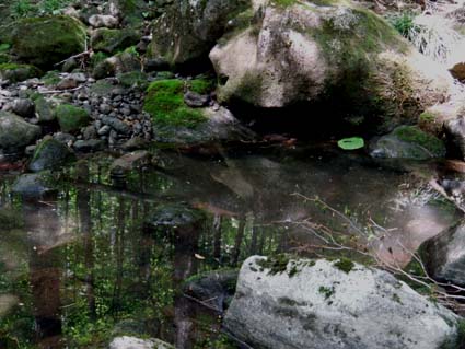 森の中にはいると水溜まりがある