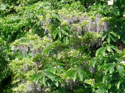 大きな穴が空いてる崖 滝のように藤の花!