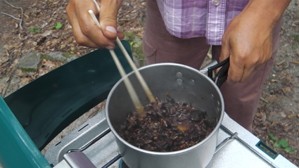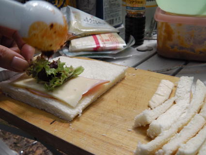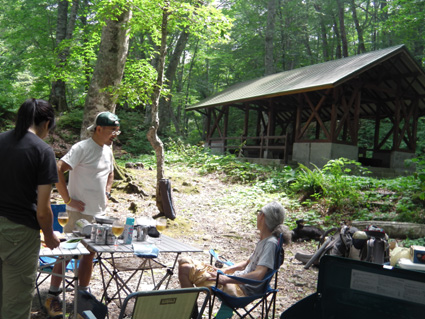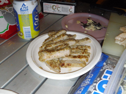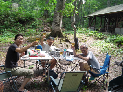 ![]() ブナ林のキャンプ場 船形山(旗坂キャンプ場)でキャンプを楽しむ! 駐車場は登山者の車で賑わってるがキャンプ場へ行くと私達の他にテン泊をする人は居なそうです BBQを楽しんでた家族など数組の姿も夕方には姿を見ることは無かった 午後からハイペースで飲んでる為か料理の具材が出る暇がない ・・・短時間に飲んだ酒の量は・・ キャンプの一時をご覧くださいね! ![]() ではでは飲みましょう 何を作るかな・・? 打ち合わせ 駐車場から100mくらい離れてる場所へ荷物を運ぶ 数回の往復で運び終わると 「のむべ〜」 と声がかかり特急で泡を頂きました ![]() 朝取り野菜が並ぶ マイタケご飯の具を作る テーブルには朝取りの野菜や漬け物が並び 喉を潤すには丁度良い! マイタケの混ぜご飯を作るのに調理するも・・・最後まで・・・ご飯は出て来なかった・・・? ![]() さくらも元気だ! けんちんうどん 毎度の仲間さくらがご機嫌です 私達は飲みに走り 初日はご飯らしき食べ物を口にしなかった為か翌朝は斜里バテ気味でした ![]() Gonちゃんのホットサンド Gonちゃん自慢のホットサンドを頂く カリッと焼いたサンドは極上の美味さです ![]() 焼き肉 生 ウインナー Atuさんやタッシーさんの料理が次々と出てくる 私は飲み過ぎて殆ど写真に収めなかったため記録にUP出来ません Atuさんタッシーさんご馳走様でした。 ![]() 後ろ姿はAtuさん 豪快に飲みました 夜中まで焚き火を囲み飲み明かす・・・が・・何時か解らないで撃沈でした 飲んだ酒の量は! Atuさんが持ってきたワイン7本 シャンパン1本 皆さんが持ち寄ったビール数十本 サワーが出てきて 日本酒はクラーから出る機会を失うなどなど 4人で飲んだとは思われない量でした・・・(笑) ![]() 早々と寝てたタッシーさん キャンプ場の夜明け 一番早く爆睡はタッシーさん 毎度の姿ですね!・・・(笑) 翌朝は今回の目的であるトンビマイタケ採りに出かけます 凄いことになった記録は明日にはUP予定 動画をご覧くださいね! 戻る |