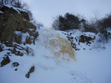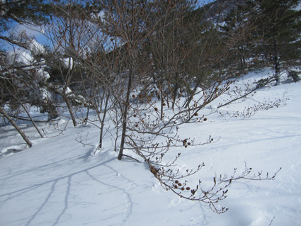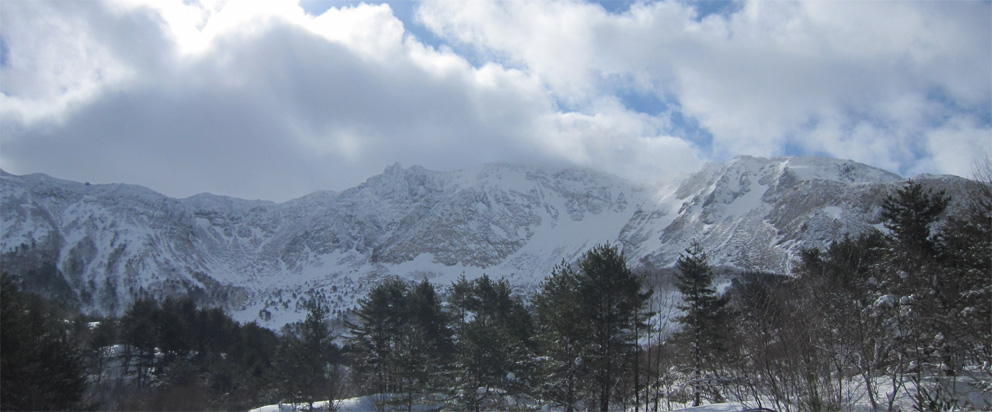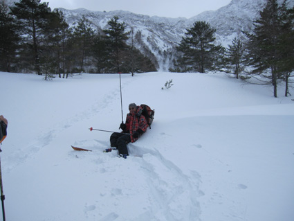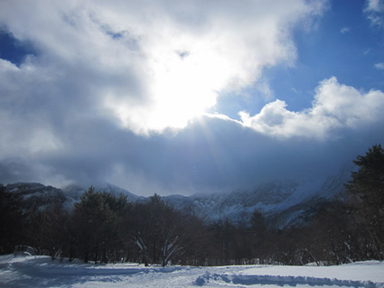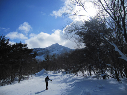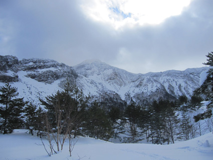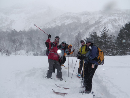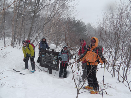 ![]() 磐梯山(裏磐梯より) 今日は青空が見えるイエローフォール探索日和になる ゲレンデTOPより登山道コースからフォールまで登り 帰りは銅沼コースを下ることにした 途中までは晴れてたが到着時は雪も降り風も強くなってきたので記録写真をとり小休憩で下山した 下山途中Seiさんと声をかけられる、 HPへ遊びに来てくれてる方と解りました(有り難うございます) ![]() Haruさん・タッシーさん・一匹さん・SHUNさん・Gonちゃん ゲレンデTOPにて! 裏磐梯スキー場からイエローフォール目指して進みます ![]() 氷結した檜原湖(眼下に望む) 林間ツアー ゲレンデTOPから眼下の檜原湖を望みました 久しぶりの林間歩きにワクワクしてます ![]() 櫛ヶ峰とタッシーさん Seiです 日射しの在る雪原歩きは汗がにじみ出ます 少し冒険(銅沼直進最短コースあり)して林間を進むと先行者のトレースが在りました ![]() 降り注ぐ日射しの中に!磐梯山の風景が広がる 重そうな雲の塊が風に流されて動きが速く 太陽の光も途切れがちに雪面を照らしてた ![]() 雪面を飾る影絵 忙しく動くガス 雪面には影絵が広がり小動物の足跡が点々としてる ![]() 櫛ヶ峰の曲線 道標が現れた ガレた壁面が荒々しい櫛ヶ峰の稜線へ急激に覆い被さる雲・・・ この頃少しコースを外れたため西へ進路を修正した。 ![]() 雪面に顔を出した木の実 休憩のSei 午前中は余裕のスキー&スノーシューツアーでしたが イエローフォール到着ころには天候が急激に変わるのでした ![]() フオールの醍醐味 Haruさん・タッシーさん・SHUNさん・一匹さん・Gonちゃん イエローフォールは良い感じの出来です これで滝が横に広がれば万々歳だ! ![]() 此がなければ始まらない 下山です よ〜し 飯にするべとスノーテーブルを作り始めると な・・何と・・風と雪が強くなり体温が急激に下がります これではビールの味も落ちてしまう 大休憩の予定(食材豊富に準備した)を変更し25分間でフォールを後にしました ![]() 銅沼にて! 少し顔を出して挨拶の磐梯山です 久しぶりのツアーも無事に終了し冬山の魅力にどっぷりと浸かる事が出来た 参加の皆さん有り難うございました ・・・Sei・・・ 動画をご覧くださいね! 戻る |