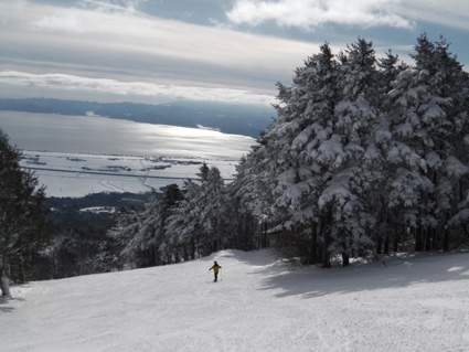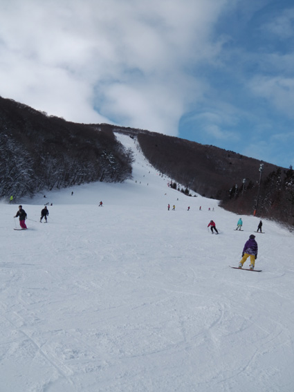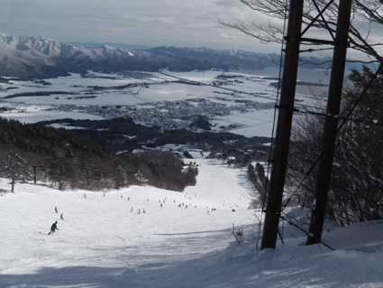 ![]() 磐梯山 ミネロ&猪苗代スキー場へ暫くぶりに来ました 晴天無風のゲレンデに磐梯山と猪苗代湖がコラボした風景を抱いて滑る醍醐味は最高です 雪質も上々で今まで余り来なかったのが不思議なくらいでした 広いゲレンデを豪快に滑ることが出来るスキー場ですので是非ご来場してくださいね! 「けしてゲレンデの回し者ではありません」・・・(笑) 二つのスキー場は共通券です ![]() ミネロリフト乗り場 赤埴大回転コース 太陽の日射しが降り注ぐゲレンデは気持ちが良いです リフト乗り場は混んでないために直ぐに乗れる。 ![]() 川桁山 猪苗代湖 東に見える川桁山は真っ白です 眼下の猪苗代湖はベタ凪で鏡のように湖面が光ってました ![]() Gonちゃんで〜す Sei こんなに素晴らしい天候の中で滑りを楽しめて 雪質も上々と来れば 何となく上手くなった様な錯覚さえ覚えるのだ・・・(笑) ![]() 猪苗代林間コース 磐梯山の白い尖り 背中に磐梯山を背負い正面に猪苗代湖を抱いて下る醍醐味は此処でしか味わうことは出来ない ![]() Gonちゃんが下って来ました 林間コースは滑る人も少ないのか閑散としてて貸し切り状態でした ![]() 林間コースを滑るGonちゃん ゲレンデより赤埴山 適度に新雪が被るゲレンデは板も喜んでるようです ![]() 眼下の猪苗代湖を望む! 今日は一日中、日射しがあり穏やかな気候の為に! 足を休めては大展望を楽しむ事が出来ました ![]() 気持ちよく滑りました Sei いや〜〜〜 本当に気持ちが良い 最高で〜す ![]() 磐梯山とGonちゃん 雄大な磐梯山 青空に鎮座する磐梯山を背景にポーズのGonちゃん ![]() はやま第一リフト乗り場 磐梯山とSei 待ち時間の殆どないリフトは快適です 今日は全てのリフトに乗りミネロから猪苗代ゲレンデを満喫いたしました ![]() ゲレンデから望む川桁山 中央ゲレンデ 暫くぶりに来たミネロと猪苗代ゲレンデでしたが良いですね〜 最高です 今度は天候に恵まれた時に磐梯山へスキーツアーで来たいと思います 動画をご覧くださいね! 戻る |