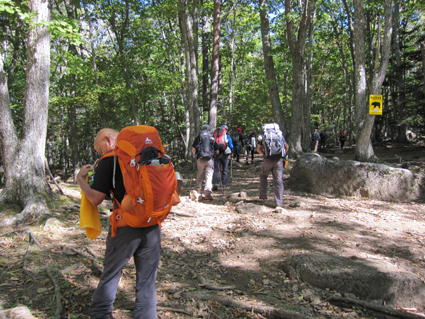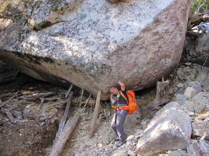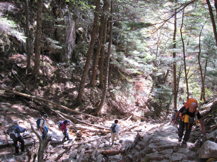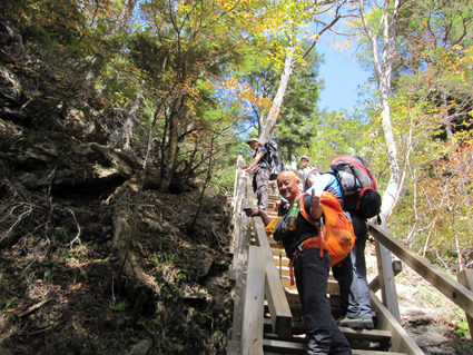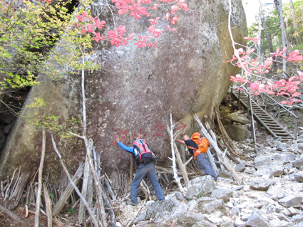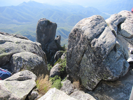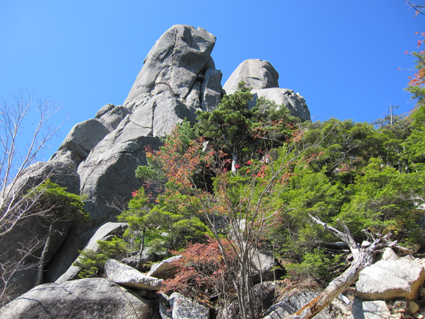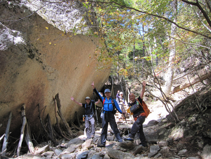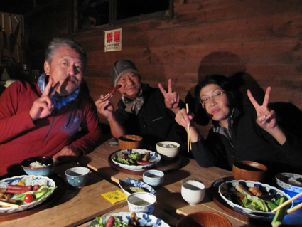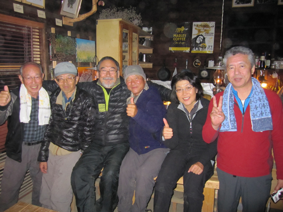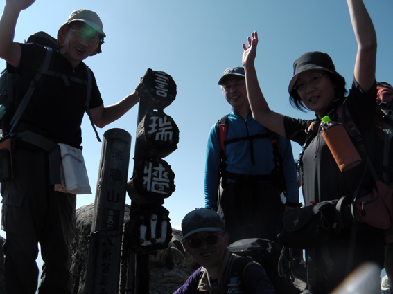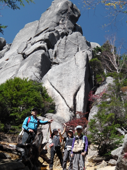 ![]() 瑞牆山頂 (奥に八ヶ岳) 郡山を12日のAM4時に出発して登山口に着いたのはAM10時過ぎてました 登山口の駐車場は満車で仕方なく路肩に車を止める ぞろぞろと道を進む登山者の姿が見える 青空の下で変化のある瑞牆山を満喫した一日の記録です ![]() 登山口(Gonちゃん〜Su−さん〜Sadaさん〜Haruさん) なんとか車を止めて登山道を進みます 雑木林の中は日陰もあり気持ちよく歩くことが出来る ![]() 紅葉の樹林帯 富士見平(Haruさん〜Sadaさん〜Su−さん〜Sei) 緩斜面の登山道を40分ほど歩くと富士見平らの分岐に出る ここは小屋とテン場があり賑やかです 今日のお泊まり場所でもあるので寄らないで山頂を目指しました ![]() 富士見平 分岐にて! 分岐を過ぎると石の敷き詰められた登山道がチョコッと現れて! 直ぐに沢に下る様になります 沢を横切り進むと広場に着く、休憩ポイントだ。。。 ![]() 登山道に大岩が点在してます 山全体が岩で出来てるのか登山道には奇岩や大岩が点在してる ![]() 岩に張り付く木々が見事だ! 沢筋を登ります 岩の上に根を張る木々が見事です 自然の力強さを感じることが出来る風景が広がるのでした ![]() 岩場に架けられた階段 青い空と紅葉 変化に富んだ登山道を進みます ![]() 山頂の奇岩 鎮座する大岩 山頂直下から見上げる奇岩 折れそうな崩れそうな岩の神秘を見ることが出来ました ![]() 山頂直下にて(Haruさん〜Gonちゃん〜Su−さん〜Sadaさん) 山頂のSei ここの大岩を回り込むように進むとロープが張られた岩場です 其処をよじ登ると山頂だ ![]() 山頂にて!(Su−さん〜Sadaさん〜Haruさん〜Gonちゃん) 山頂は狭く 先行者が下山しないと居る場所がありません・・・? ![]() 山頂より富士山 聳え立つ奇岩 山頂からは富士山や 南アルプスの山並み八ヶ岳などの展望を楽しむことが出来ました ![]() 山頂の登山者と八ヶ岳 大岩を持ち上げるSei 下山時に大岩を持ち上げる登山者が現れる・・・(笑) ![]() 大岩を支えるHaruさんとSei 富士見平の小屋前にて! 沢に倒れそうな巨岩を押さえて頑張る奇妙な姿! 岩には数百本のつっかい棒が在ります 「ガンバレ」 小屋に着いた私達は上着を羽織り宴会突入でした ![]() 小屋の看板 Gonちゃん〜Su−さん〜Haruさん〜Sadaさん 富士見平小屋 Su−さん〜Sadaさん〜小屋のオーナー(Aikawa)さん〜Sei〜Gonちゃん〜Haruさん 小屋ではオーナーから山小屋の現状や登山者の話を聞き 身をもって安全に努めることやマナーを守ることの大切さを改めました ![]() 夕食の時を楽しみました 小屋のスタッフは笑顔の絶えない優しい方々です ランプの宿で一日目の疲れを癒し眠りにつく、明日は金峰山へ登る! 動画をご覧くださいね! 戻る |