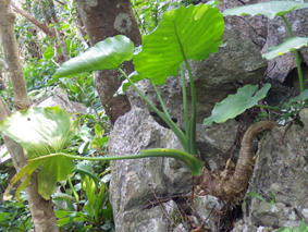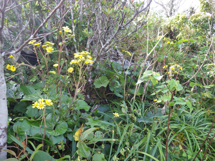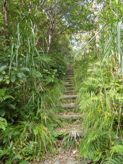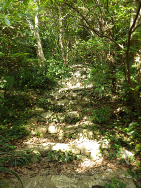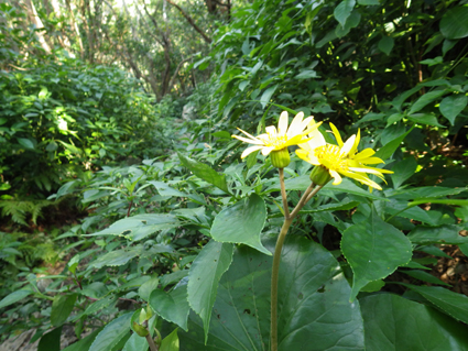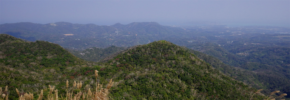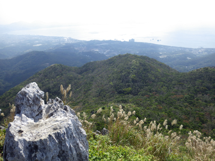 ![]() 山頂からの展望 かって嘉津宇岳にはヤギが放牧されていた また麓にはシークワーサーの畑が在り産地としても知られた地域です ![]() 登山口のSei 直ぐに現れた階段 沖縄の山二つめは嘉津宇岳でした 大きな駐車場の在る場所が登山口です ![]() 石灰岩の登山道 里芋のような大きな葉 登山道に生息する木々の中を進む! 所々に1mを超えるような背丈の里芋に似た葉の植物が道を縁取ってます ![]() 照葉樹林(イタジイ、タブノキ、コバンモチ、カクレミノ、イスノキなど) 沖縄に生息する木々を調べても名前が一致しない たぶん上記の木々の名前の中に山肌を覆ってる木が在るのでしょうね!・・・? ![]() 石灰岩の道を登ります アサギマダラ・・・? ![]() 倒木が道を塞いでる 岩にしがみつく植生 ![]() トウゲブキ 石灰岩の山肌 ![]() 岩に食い込む木々の根 山頂より八重岳(通信施設が見える) 此処の山域(嘉津宇岳・八重岳・安和岳)は貴重種の植物や 動物が多く天然記念物に指定されてる自然環境保全地域と成ってる またハブが居るので岩穴や藪には入らないように注意を受けました ![]() 山頂のポール 突き出た山頂の石灰岩 山頂は360度の展望で海岸の連なりや山々が一望できます 八重岳の山頂にはタンクの様な物体と通信施設の塔が並んでました ![]() 山頂のSei ミカンを食べました ピークの展望 (霞んで見える海岸線や連なる山々) 石灰岩の露出した岩道を進む嘉津宇岳は 山頂も尖った岩が並ぶデコボコの山でした しかし海岸線から吹き抜ける風が気持ちよくついつい長居となります 標高こそ低い山だが変化に富み山の醍醐味を十分に味わうことが出来ました ![]() 山頂からの展望 ![]() 山頂直下に咲く花 山頂に咲いてた花 ![]() 海岸線に降りたSei そーき蕎麦 下山後は海岸に降りて珊瑚の砂浜で休憩です その後タクシーの運転手さんに教えていただいた 美味しい蕎麦屋さんへ立ち寄り「そーき蕎麦」を食べて那覇市内に戻る 動画をご覧くださいね! 戻る |