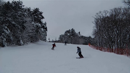 ![]() ゲレンデのGonちゃん〜Shunさん〜タッシーさん 福島県に在る沼尻スキー場は緩斜面の多いコースだが スキーの練習には最適なゲレンデです 変化に富み林間を利用した滑りを楽しめる等、お勧めのスキー場である。 ![]() リフト乗り場 タッシーさん〜Gonちゃん〜Shunさん 駐車場は連日無料ですが今年からリフト料金が変わってました ん〜〜〜 (@_@) 仕方ないか 世の事情が変わったのだから・・・苦笑 ![]() Gonちゃん ゲレンデの風景 ゲレンデに飛び出せばテンションUP 昨日と違って風も弱く絶好のスキー日和になりました ![]() Shunさん Gonちゃん パウダースノーに皆さんノリノリです ![]() タッシーさん Shunさん 適度な斜度で板も喜び滑りの腕が急上昇だ・・・(苦笑) ![]() 林間を滑るタッシーさん パラレルターンの練習 ゲレンデから林道コースに入る ![]() Gonちゃん パウダーのゲレンデ 山並みを見ることが出来ない曇り空 樹氷と木々に残った赤い実などに目線が泳ぎます ![]() 雪景色のリフト Seiです 最上部に行くために第五リフトに乗ります 殆ど人影がない・・・? 続いて第6リフトに向かうと、何と 動いてないではないかいな” 係の方に聞くと積雪が足りなくクローズである・・・撃沈 ![]() 素晴らしい雪質のゲレンデを滑る 気を取り直してクワッドリフトに乗り チャレンジコース ボブラコース しゃくなげコースを滑りまくる・・・(笑) ![]() な〜に タッシーさん 滑っていった 見つめるタッシーさんに な〜にと声をかけるも 何も言わないで滑って行った ![]() Sei Gonちゃん〜Shunさん〜タッシーさん 夕方から仕事のShunさんとタッシーさんは早めのお帰りです 残ったGonちゃんとSeiはゲレンデハウスで休憩 其処に甥子家族が合流して暫し歓談でした タッシーさん Shunさん Gonちゃん 山小屋拠点の滑りを今後も楽しみましょうね! ・・・Sei・・・ 動画をご覧くださいね! 戻る |