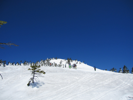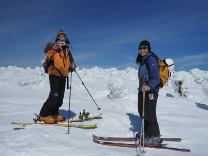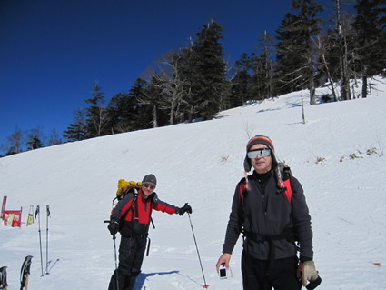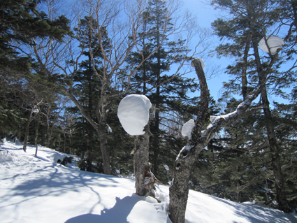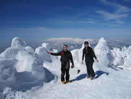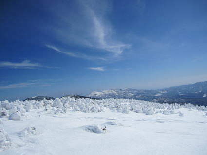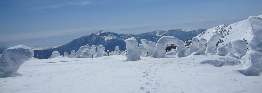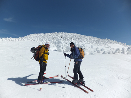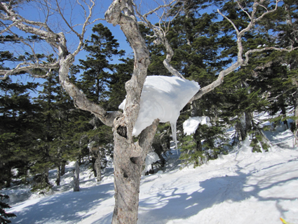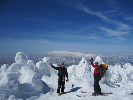 ![]() 西吾妻山より磐梯山方面を望む! ![]() ゲレンデTOP AM11時出発(Sei〜HARUさん) 今シーズン初めて! 素晴らしい天候の中を西吾妻山二十日平を滑る ![]() 抜けるような青空 古木に留まる雪玉 雪面も硬く歩きやすい 抜けるような青空の中を爽快にテンポよく標高を稼ぎます ![]() 足を取られて転けるSei 氷 柱 雪に隠れた氷に足を取られて転ける事もあるのだ!・・・(笑) ![]() ダケカンバのオブジェ 林間の磐梯山 ダケカンバが気持ちよさげに腕を広げる 林間から磐梯山も姿が見えるようになった ![]() 安達太良山方面の風景 目線に磐梯山を見る 登るにつれて展望が開けます ![]() 西大巓の尖り 山頂の樹氷 西大巓山頂直下のオープンバーンには登山者や滑家が動いてる 凄い人ですね! ![]() 西大巓より朝日方面 山頂のHaruさん〜Sei 山頂は360度の眺望です 飯豊山や朝日〜蔵王〜等々の白い峰が太陽に日射しを受けて輝いてた 西吾妻山頂の動画です! ![]() 山頂のHARUさん〜Gonちゃん 樹氷原 樹氷の中を散策する 硬い雪面で坪足でも沈まない ![]() 西吾妻のコル 西吾妻より西大巓 眼下に広がる樹氷原がコルより山頂へ延びてます ![]() モンスターとSei&Gonちゃん モンスター群 見事に樹氷原が広がってました。 ![]() 巨大な樹氷とSei 西吾妻のモンスター 此処のモンスターは凄い! 素晴らしい樹氷に足止めされて広がる風景をツマミに昼食を楽しみました ![]() 滑降前のHARUさんとGonちゃん 雪溜まり 展望を心ゆくまで楽しんでから山頂を後にしました ![]() 飛行機雲 二十日平の雪原 山頂のオープンバーンを下ると林に入る 途中で休憩をとりながら滑降を楽しみ約2時間でゲレンデハウスに到着でした 動画をご覧くださいね! 戻る |