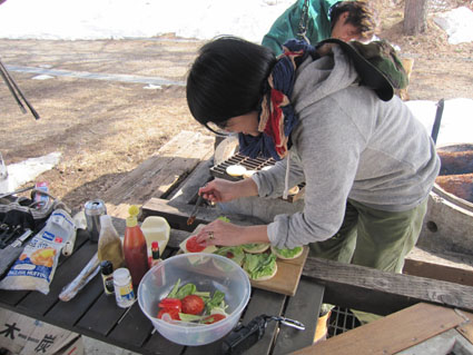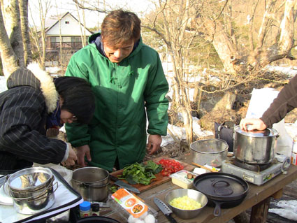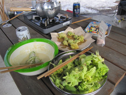 ![]() 山小屋へ三々五々集合です 東北自動車道が事故のために通行止めとなり 仙台から予定時間より二時間遅れで到着したタッシーさん・ムッテイさん・Mikiちゃんでした ![]() ムッテイさん〜Mikiちゃん〜タッシーさん〜Gonちゃん ワインを片手に旬を頂く合図だ! サクラも今日の仲間です 集合したところで喉の渇きを癒す為にタッシーさんがコルクを空けます 一匹さんは猫魔で滑りを楽しんでるため未だ姿が見えない Haruさん時間(お決まりの夕方)までは余裕があるため当然姿は見あたりません・・・(笑) ![]() ハンバーガーを作るMikiちゃん フキノトウの天ぷら 料理を手早に作る フキノトウは天ぷら・アブラナはゴマ和え・新タマや旬の野菜が今日の食材です フキノトウは小屋へ来る途中にゲットしGonちゃんが揚げる サクサクと味噌味が効いた極ウマだ ![]() 良い感じで! オムレツを焼く 本格的なハンバーガーを作るムッテイさんとMikiちゃん 野菜たっぷりオムレツはタッシーさんの腕自慢でした ![]() ハンバーガー オムレツ フキノトウ これは力作の一部です・・・(笑) ![]() 野菜たっぷりオムレツの出来上がり 寒くなったところで小屋へ入り旬の食べ比べは永遠と続く・・・・ 明日のツアーはどうなることでしょうね! 動画をご覧くださいね! 戻る |