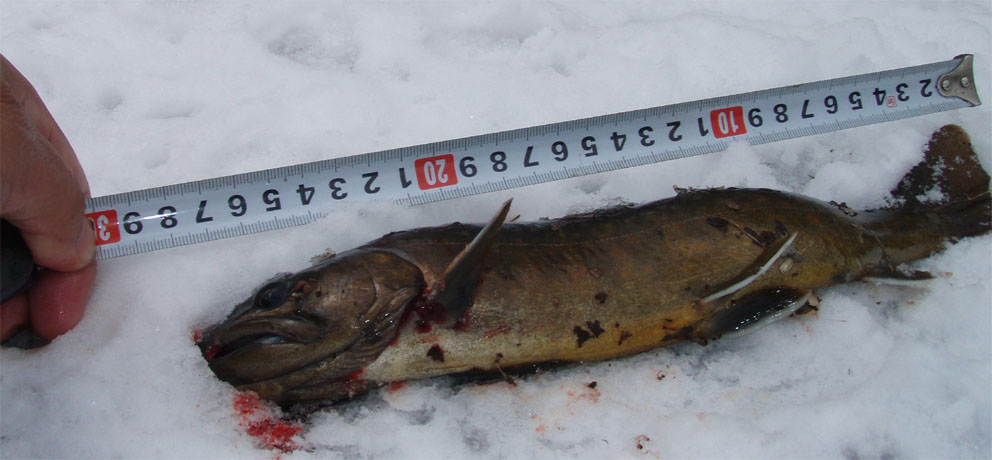 例年の事だが季節外れの雪が降ると大物が釣れるのだ