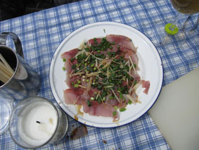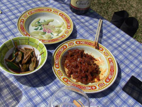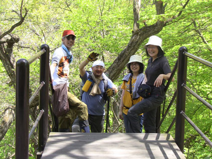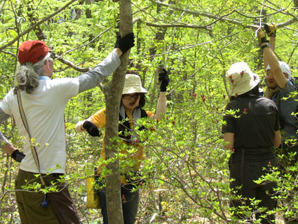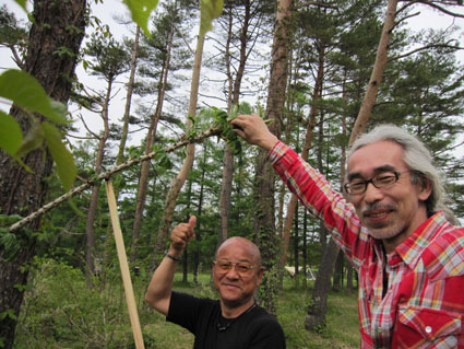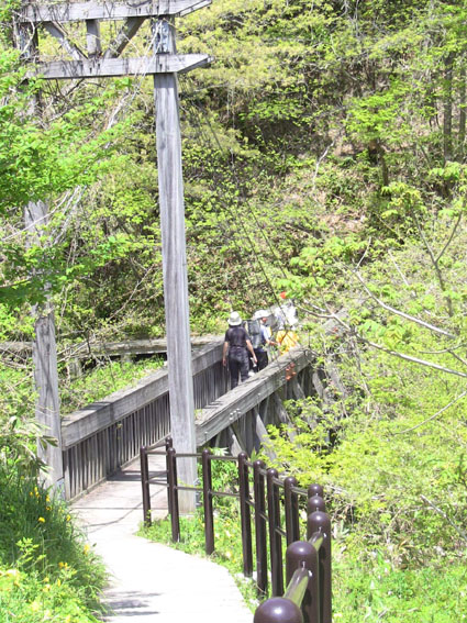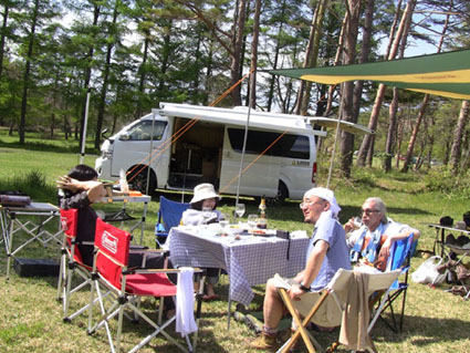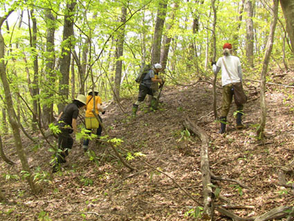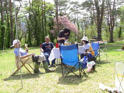 ![]() 鬼首の里山で山菜を採る 宮城県にある鬼首「吹上高原キャンプ場」へ来ました 広大な敷地に源泉掛け流しの温泉が隣接してる素晴らしい場所です 裏山に入れば旬の山菜が豊富にあり (コシアブラ・コゴミ・タラノメ・ハリギリ・サク・ヤブレガサ・ウルイ等々)近郊で採ることが出来る 此は取り立ての山菜と楽しい仲間が二日間過ごした記録です ![]() キャンプ場 テント設営完了 いや〜 広いキャンプ場ですこと 到着早々にビールで乾杯でした ![]() 広い芝生 暫し歓談です 晴れた空の下に、 そよ風が吹き新緑に囲まれたテント場はまさに天国です ![]() 裏山へ山菜採りに出かけました タッシーさんの庭と自負する裏山へ山菜採りに出かけました ![]() コシアブラを発見 ツツジは蕾 まさに山菜がワサワサ在ります コシアブラを見つけて歓声を上げるメンバーを見て此処は庭だからと自慢げなタッシーさんでした・・・(笑) ![]() 散策しながら見つけたコシアブラやハリギリがいっぱいだ ハリギリを見つけるとShunさんが立派なトゲだ事と笑わせるのです 少し場所を変えようと尾根ずたえに登る ![]() シラネアオイ ヤブレガサを頭にSei 其処はシラネアオイの群生地だったと言うが疎らにしか見あたらない 風の便りに聞いた所では、 掘り起こされ持って行く輩が居ると!困った者ですね。。。 ![]() ブドウの芽を採ります サクが食べ頃だった ヤブレガサやサク・ブドウの芽・ウルイ等々を採りキャンプ地へ戻る ![]() 山菜採りから帰りビールタイム サクラも疲れたのかな・・・? 戻る早々ビールで喉を潤す 留守番のサクラちゃんは待ちくたびれた様でした・・・ゴメンさい ![]() 豊富な山菜 料理を作るShunさん 豊富な山菜を振り分けして料理に架かります ![]() 料理の数々 つみれ汁 黒毛和牛 ![]() 山菜パスタ サワラの刺身 上記は料理の一部です サクの油炒めは私にとって絶品でした ![]() 夜中は焚き火で盛り上がります 翌朝の様子 夜もくれて焚き火の明かりで暖をとり飲みます 昨晩は三時間しかねてないShunさんが眠いコールを連発する それでは寝ましょうと時間不明で眠りに付いた ![]() ハリギリを採るSei〜Shunさん ハリギリ娘のHiroちゃん 翌朝は朝ビーに始まりソウメンで朝食を済ませる キャンプ場に在ったハリギリをShunさんとSeiが採りHiroちゃんへ渡す そしてタッシーさんとGonちゃんSeiは花渕山へ出かけました 鍋倉山〜大柴山〜花渕山ハイクは後ほどUP致します ・・・Sei・・・ 動画をご覧くださいね! 戻る |