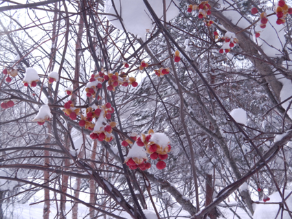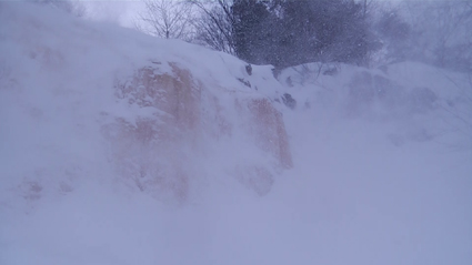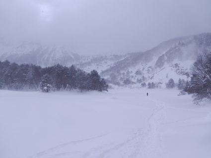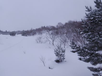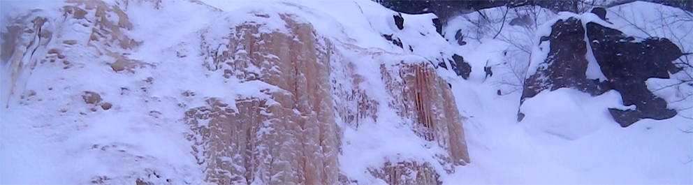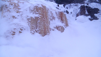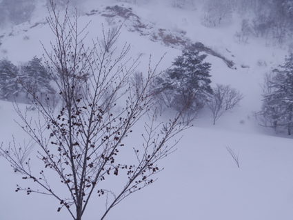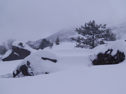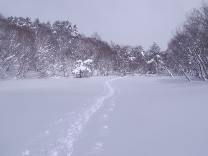 ![]() イエローフォール 19日 行く先が決まらずデコか沼尻で滑るかなと車を走らせた 猪苗代に近づくと晴れ間も見える ヨッシャー裏磐梯にゆくべ・・・と決定した そしてイエローフォールに行くために裏磐梯スキー場へと向かっのです ![]() ゲレンデTOPに在る案内板 ウメモドキ ゲレンデTOPの案内板の前で準備をする 私の他にスノーシュー組が二人いました 雪はチラホラ落ちてるがまあまあの天候です ![]() ウメモドキ 足 跡 山側にコースをとり進む 真新しい雪面に足跡を残すのは気持ちが良いですね〜 ![]() 銅沼(あかぬま) 沼の様子 銅沼は雪に埋まり沼上を歩く先行者の姿がありました ![]() 噴煙が上がる斜面 噴火口の中を進みます 銅沼の南西には噴煙を上げる壁があります 雪の付いてない場所からはゴーゴーと音を発てて白い煙が上ってる ![]() 大岩の在る火口 低木の混じる緩斜面 小さなアップダウンを過ぎると大岩が現れます 其処から私は山に向かってのぼる 先行者は平坦地を直進するが、 私は斜面を進みフォールの在るところへコースをとった。 ![]() 日射しが落ちて噴火壁が現れた イエローフォール イエローフォールに近づくと三名の先行者の姿が見える 私は普段のコースとは違う所を探索を楽しみながら向かった為に 上部より下るようにフォールに向かったのです ![]() 熊さんの手・・・? 休 憩 休憩場所はウメモドキの綺麗な木のしたです 単独の為に いつもの笑い声は響きません・・・苦笑 一人飲む缶酎ハイは ほろ苦い大人の味でした 裏磐梯のイエローフォールの見頃は少し先なのでしょうか 週末から2月半ばが・・・? ![]() イエローフォール 雪が舞う ![]() 瞬間の日射しを受ける 成長過程のフォール ☆ 未だ成長途中ですが見事でした ☆ 往復で出会った方は10数名でしょうか・・・・? 裏磐梯噴火口に出現するイエローフォールの成長は続いてると思います 一度寒波が去り雪解けがあると急成長するのかなとフォールを後にしました。 動画をご覧くださいね! 戻る |