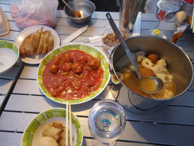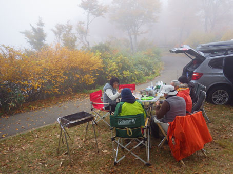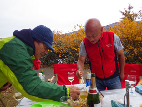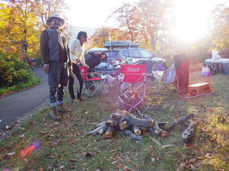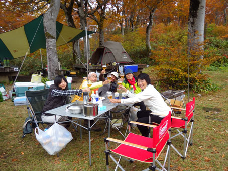 ![]() 須川湖(穏やかな湖面に映る錦絵) 須川湖キャンプ場に着くと既に先着組はご機嫌です それではと着く早々泡で乾杯 湖面に映る紅葉を眺めて暫し寛ぎました。 ![]() 栗駒山 湖面のオブジェ まさに紅葉真っ盛りの栗駒山麓です ![]() べた凪 切り立つ岩峰 べた凪の湖面には木々が縁取る中を泳ぐ様に雲が浮かんでます ![]() カヤックで遊ぶ仲間 Hiroちゃん キャンプ地に持ち込んだ二艘のカヤック 風も無く穏やかな水面を気持ちよさげに漕ぐ姿見ることが出来ました ![]() 宴会の様子 飲みましたよ~ 食べて飲むことも忘れません・・・笑 寒さに負けじと暖かい鍋料理を囲みテンションが上がります ![]() 色んな料理を食べました ![]() 完全防寒の中で半袖のSei 夜の宴会 皆さんが寒いと持ってきた防寒着を着込む中半袖姿が一人・・・? 風邪引くなよ~ ![]() 湖面に映し出される風景 二日目は快晴無風でした さざ波も無い湖面に映し出される風景に惹かれて写真を撮りまくります ![]() 子羊の肉 リゾット タッシーさん 最終日の朝は鍋料理の残り汁でリゾットを作りました これが美味いの何のって極上の朝ご飯となる ![]() 朝靄のキャンプ場 最終日の朝 時間がたつにつれてガスが架かる 台風の影響が出てきたのか風も冷たくなり早めの撤収です 須川湖キャンプ場の二泊三日が完結いたしました タッシーさん・Shunさん・ムッティさん・Hiroちゃん・Gonちゃん 楽しいキャンプありがとうございました ・・・Sei・・・ 動画をご覧くださいね! 戻る |