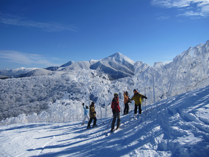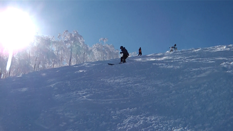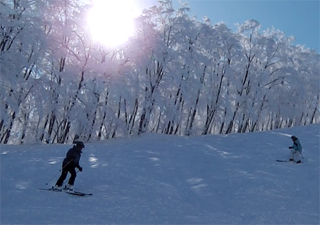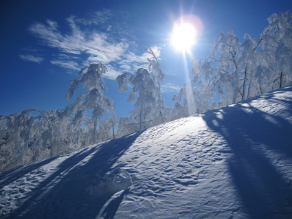 ![]() 吾妻山~櫛ヶ峰~磐梯山 放射冷却で山小屋の窓がガリガリに凍りついた夜明けは素晴らしい天候です 猫魔へ走る車窓からは磐梯山がクッキリと青い空に浮かんでました ![]() 真っ青な空 リフトでTOPへ行きます ゲレンデ下部の木々は木肌が出てるが 上部に行くにつれて樹氷原が現れる ![]() 樹氷が綺麗だ タッシーさん・Haruさん・Shunさん・Gonちゃん・ムッティさん・Hiroちゃん 太陽の光に樹氷原の木々がキラキラと輝き視線を奪う! 絶景を眺めてリフトを下りると、まずは中間地点で滑るべと粉雪の積ゲレンデへ整列です ![]() 樹氷原を滑る! 絶景のゲレンデ 真っ白い斜面をGonちゃんとHiroちゃんが下りてきました ![]() 飯豊山(奥に見える白い尾根) 太陽がまぶしい 何処までも見える素晴らしい風景に滑るのを忘れて写真を撮りまくる ![]() 白銀の世界 心が洗われる様な透き通った空間に沈黙の時が流れた ![]() 全てが凍りついてる 磐梯山を背景に! 見渡す限り全ての物が寒さで凍りつく 木々もリフトもケーブルも 山並みだけが青空に抱かれて温もりを感じてるように見えた。 ![]() ムッテイさん Sei ![]() タッシーさん Shunさん ![]() Haruさん Hiroちゃん ![]() Gonちゃん あれ~ ![]() グランデコ~箕輪~沼尻のゲレンデが見えます 真っ青な空の下に山並みが曲線を描き広がる 白いラインはデコや箕輪~沼尻スキー場のゲレンデです ![]() Hiroちゃん・ムッティさん・Shunさん~Haruさん~Sei~タッシーさん そして二人目がGonちゃん 今日は滑る時間と風景に見とれる時間が ハーフ ハーフ ん~ どこかで聞いたようなフレーズですね・・・笑 ![]() 影絵が綺麗です 今日は目に飛び込んでくる全ての景色が心を掴まえた ![]() クワットリフトTOP 眼下の檜原湖 滑り終える前にゲレンデTOPまで行って絶景を堪能する! シーズンを通してもなかなか今日のような晴天無風には巡り合うことができない 私たちは名残を楽しみゲレンデを後にしました ![]() 絶景のゲレンデを滑る 二日間の滑りを楽しむことができました タッシーさん・ムッティさん・Shunさん・Haruさん・Hiroちゃん・Gonちゃん 有難うございました・・・Sei・・・ 動画をご覧くださいね! 戻る |