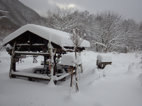 ![]() 裏磐梯に冬到来 裏磐梯に本格的な雪が降りました 白銀の世界に一変した山小屋は別世界です ![]() ウッドデッキ 雪が積もる 数日前まではキノコも出てた山小屋が冬ごもりです ![]() 東小屋 積雪30~40cm 東小屋もお花畑も雪の下になった これで春の訪れまでは根雪になるでしょうね! ![]() 露天風呂 テーブル 春から晩秋までお世話になった露天風呂も開店休業だ 外のテーブルにも40cmくらい雪が積もる ![]() Love 山小屋 本格的な雪にLoveも大喜びです ![]() 冬ごもり 石窯と釜戸 石窯や(焼物や煮物)で活躍した釜戸も雪の下になった 冬ごもりの山小屋ですが ゲレンデや山スキーの拠点として 冬の間も活躍いたします 2015年4月までの5ヶ月間は白い世界で楽しみましょうね! ・・・Sei・・・ 動画をご覧くださいね! 戻る |