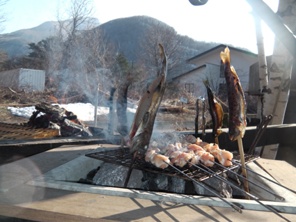 ![]() デコから望む山々(川桁山〜白布山〜櫛ヶ峰〜磐梯山〜猫魔岳) シーズンの打ち上げはグランデコへ 朝からピーカンの青空が広がってました ![]() ゲレンデTOP タッシーさん・Shunさん・Sei・Hiroちゃん ゲレンデTOPへ行くと真っ白いザラメの雪面が待ってる 暫く展望に見とれ写真を撮ることに夢中になりました ![]() 久しぶりの青空の下で! 絶景です 滑るのを忘れて山談義に! あれが川桁山で○○が・・・・久しぶりの青空に皆さんテンションが上がる ![]() 林間コース ザラメ雪のゲレンデ 林間コースのザラメ雪が気持ちよく板を走らせる ![]() 上部の斜面は雪質最高だ! Gonちゃん〜Shunさん〜タッシーさん〜Hiroちゃん 雪質が良く皆さんご機嫌だ! 打ち上げの滑りに最高のプレゼントを頂いた様な爽やかな気持ちに成りました ![]() シーズン後半は滑家も少ない リフトも直ぐに乗れた ゲレンデ下部は雪が汚れてブレーキが係り 斜面には大きな口を開けて山肌が露出してる所もありました ![]() タッシーさん〜Shunさん〜Hiroちゃん 林間コース Shunさん 上部のコースを繰り返し滑る ![]() 戯けるSei 吹っ飛びGonちゃん 最後の滑りを惜しむように感触を楽しみました ![]() 打ち上げは! 板の虫干し ・・・そして・・・ 予定通り山小屋で打ち上げの宴会が始まりました ![]() 料理の品々 Shunさんの料理に始まり タッシーさんのナンコツ串焼きや焼物が次々と並べられる もちろんイワナは囲炉裏で焼かれてます・・・笑 ![]() シャンパンを抜くHiroちゃん&Shunさん そして 沢で捕まえたイワナさん 夕方になっても日射しがあり東屋で宴会は続きます 寒くなれば小屋へ逃げ込み飲み会が終わったのは真夜中でした 皆さんシーズン中はお世話になりました ・・・Sei・・・ 動画をご覧くださいね! 戻る |