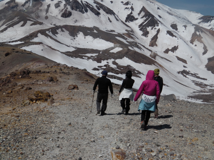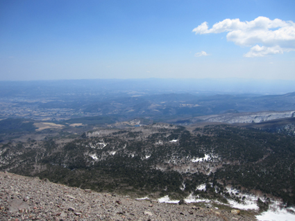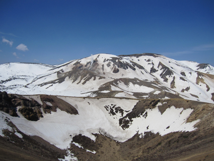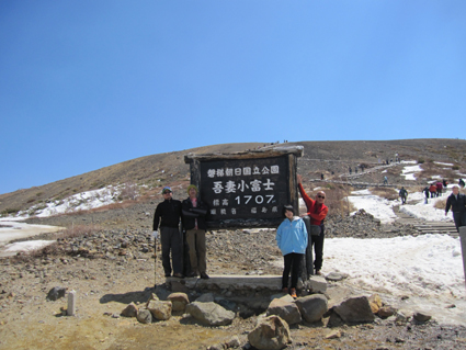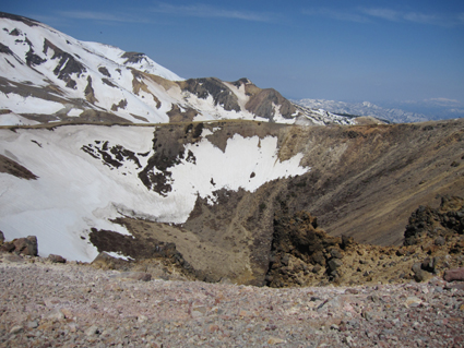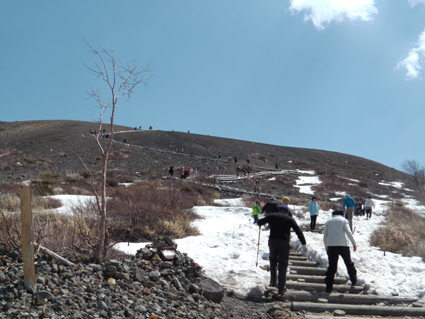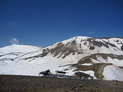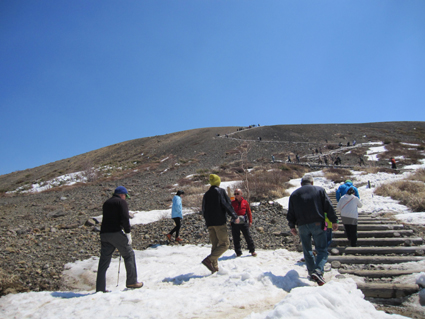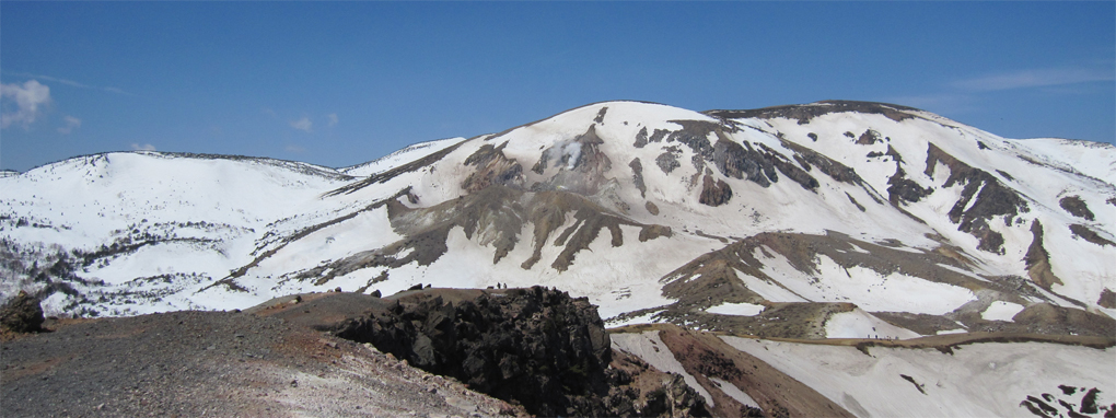 ![]() 吾妻小富士より蓬莱山〜一切経山 13日は山スキーへ行くか・・・ それともスカイラインの雪の回廊を見て吾妻小富士へ行くかチョッピリ悩む!・・・(笑) ![]() 早朝は小屋の周りで散策を楽しみました ミズバショウ 早朝は皆さんで小屋の周りを散策し フキノトウを採ったりミズバショウの咲く沢へ足を延ばす ![]() スカイライン 雪の回廊 猪苗代方面からスカイラインへ入ります 今年も無料で開放された 道路は乾燥してて走りやすく浄土平に近づくと雪の回廊が現れる ![]() 浄土平(Hiroちゃん〜Sei〜タッシーさん〜Shunさん) 小富士へ行きます 駐車場は満車状態です 端の方に何とか止める場所を見つける。 その時・・一大事が・・起きる! なんとSeiが緊急事態となったのです・・・爆笑 急いでビジターセンターへ駆け込むも用を足す場所が少なく爆発寸前でした なんとかセーフで事なきをいる。・・・苦笑 ![]() 吾妻小富士の外輪を目指す 登山道は雪解けで悪道 青空に吸い込まれるように吾妻小富士へ登ります ![]() 噴火口外輪から一切経山 噴火口 外輪に着くと多くの人達がハイクを楽しんでます 火口の輪郭が青い空に縁取られ流れる様に曲線を描いてた ![]() 釜を覗く 外輪より (兎平) 小富士の火口には水が無い 一切経山の五色沼は満々と水が蓄えられてるが自然は不思議ですね! ![]() 南方から見た山々 福島市方面の風景 外輪を歩いてると刻々と景色が変わります 眼下には福島市方面の景観が広がり水平線が霞んで見える! ![]() 外輪にて(Gonちゃん〜タッシーさん〜Shunさん〜Hiroちゃん) 外輪を一周して下山します ![]() 浄土平駐車場 ビジターセンター 約一時間強のハイクを楽しみビジターセンターへ寄り 美味しい食事を頂きました ![]() 下りは福島方面へ 磐梯吾妻スカイラインを通り抜けて帰路についた 皆さん二日間有難うございました ・・・Sei・・・ 動画をご覧くださいね! 戻る |