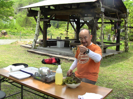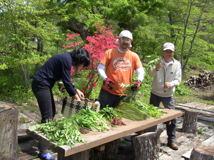 ![]() 近郊の山へ山菜採りに行く 今年もやってきました山菜オフ会 12名の参加で賑やかな二日間を楽しむ事が出来ました 24日早朝は山小屋近郊の山へ山菜採りに出かける ![]() 山菜が豊富な山肌 ワラビの列 ニンジンサクやタラノメ・シオデ・ウルイなどなどがいっぱいです ワラビの並んだ場所を見つけてご機嫌なSu−さん ![]() シオデの出る山道 Su−さんとタッシーさん 林道の脇にはシオデが出てる 地面を見つめて山菜の出てるところを捜査する眼光が光ります・・・笑 ![]() 野生蘭・・・? 採ってきました 野生蘭と思うが・・・? 綺麗な花でした 小屋へ戻り 山菜を選り分けます 此程食べるべかと心配するも帰りのお土産となり重宝いたしました 山菜の種類は! コシアブラ・タラノメ・ウド・ウルイ・サク・シオデ・ワラビ・クレソン・アザミ・ヤマワサビなどなど10数種類でした ![]() 天麩羅の準備をするタッシーさん 山菜を洗うSu−さん 天麩羅様に小分けするタッシーさんと 採りたての山菜を洗うSu−さん ![]() ワラビの灰汁抜き 山菜が並ぶ! ワラビの灰汁抜きをします ![]() イワナの塩焼き 集合し始めた参加者 イワナの塩焼きは順調に出来上がってます ライブカメラ早送り動画をご覧くださいね! ![]() ホウチャクソウ クマガイソウ スズラン ![]() ユキザサ チゴユリ シラネアオイ ![]() モクレン 牛肉の炭火焼 山小屋定番の牛肉の炭火焼だ! 焼き上がると表面に塩コショウしてナイフで削ぎ取り食べる これが美味で最高です ![]() 風情のある鉄釜 お好み焼き 風情のある鉄釜はタッシーさんからのプレゼントです 前夜祭で此またタッシーさんが作る評判のお好み焼きを食べました 「ん〜〜〜 上手い} ![]() 三々五々の様子 暖機運転開始 小屋の周りで寛ぐ参加の皆さん これから先はお酒が入ったSei 記録写真がスパッと在りません・・・苦笑 ![]() 順調に進む! スマートになった二人・・・? ポカポカと日溜まりの小屋で新緑に包まれ楽しみました 総勢12名 仙台から5名 群馬から1名 県内から6名です 皆さん二日間有難うございました ・・・Sei・・・ 動画をご覧くださいね! 戻る |
