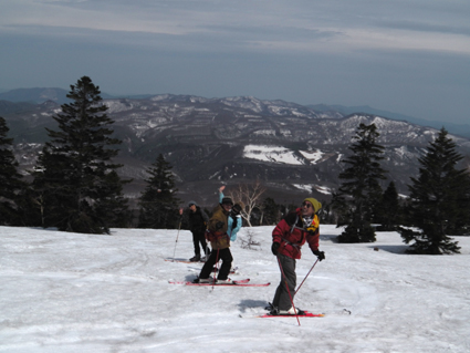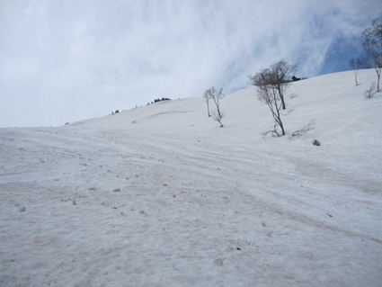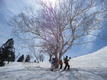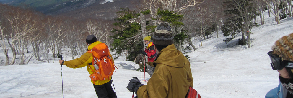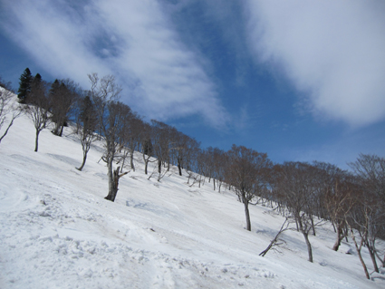 ![]() 滑降ルートを眺めるメンバー 2013〜14年の板納めは今年も八甲田山でした 最後の滑りは銅像ルートです 今日も昨日に続いて真っ青な空だ! 毎年来てるGW後半の滑りで此処まで良い天気に恵まれたことは在りません! ![]() ロープウィエ山頂駅で (Shunさん〜ムッティさん〜Hiroちゃん〜Gonちゃん) 山頂は今日も滑家さんで賑わってます 私達もシーズン最後の滑りを楽しみましょうと気合いが入りました・・・笑 ![]() 前岳のコルを登ります 朝から気温が高く汗が噴き出る こんな所を去年も登ったっけとShunさんが呟く・・・ ![]() 大斜面のピークは亀裂があります 眼下に見える銅像茶屋 しかし滑降斜面に出ると一気にテンションが上がるのが解ります 亀裂を遠目に覗き雪崩は大丈夫かな・・・? ![]() 程よい林間が開ける トレースが見える斜面 滑ってきた大斜面を振り返るとトレースが見える ん〜〜〜 彼処を滑ってきたのだなと自分の描いた跡に満足な私達でした。 ![]() ダケカンバの林で休憩 良い斜面ですね! 未だ早い時間でしたが休憩をする 眼下には滑り込む予定の銅像茶家が確認できた ![]() 少し汚れてる雪面 大きなダケカンバ 滑降ルートは少し汚れてる所も在るがブレーキが係る程ではない 大きなダケカンバの下で一息入れました ![]() 素晴らしい斜面の連続だ! 滑降斜面を振り返るメンバー 何処までも続く気持ちの良い斜面 振り返り振り返りルートを見る ![]() 広大な斜面を滑りました 名残惜しむ一時! 今日がシーズン最後の滑りです 下るのが勿体ない様子のSei 暫し板を止めて佇んでました 素晴らしい仲間に有難う 此からは登山に山菜採り・・・キャンプと楽しみましょうね! 動画をご覧くださいね! 戻る |