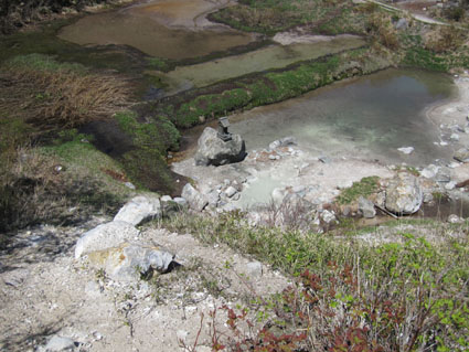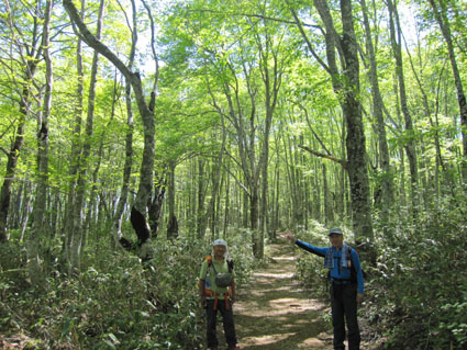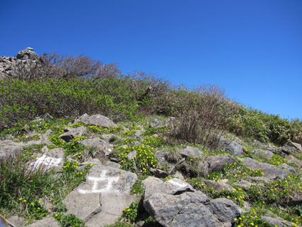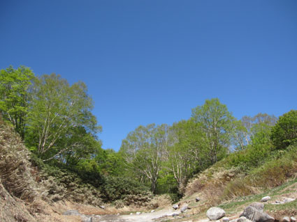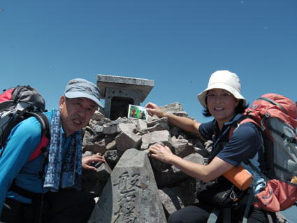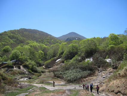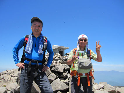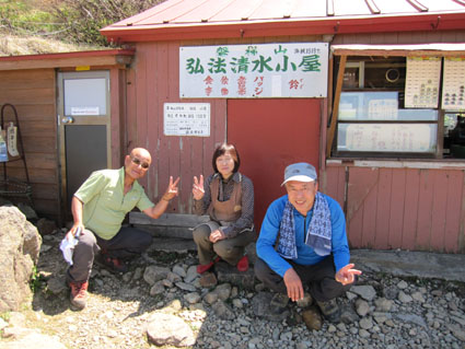 ![]() 新緑のブナ林(八方台ルート) 私達は5月26日に旅立ったOka顧問の写真と共に 思い出の山 磐梯山へ追悼登山へ訪れました 八方台の駐車場は先週に続いて車で溢れてます 仕方なく少し先にある駐車場まで進み車を止める ![]() 登山口のHaruさん〜Oka顧問〜Gonちゃん 奥に見える磐梯山 真っ青な空 爽やかな緑 気持ちの良いそよ風が吹いてます まさにOka顧問を偲び山へ来るための全てを演出してくれてる 今日の天候は、登山日和と言う事でしょうね! ![]() 後方に中ノ湯跡(Gonちゃん〜haruさん) 源泉吹き出し口 歩き始めて一時間、中ノ湯跡に着いた 風に流れて硫黄の臭いが鼻を突き、登山道脇には廃屋が棟を並べる 廃屋の近くまで寄り 源泉の湧き出る場所へ・・・ 祠の祀られてる黄色い池から温泉がコンコンと湧き出てました ![]() 中ノ湯(Sei〜Haruさん) サンショウウオの卵 中ノ湯の道標から少し登ると沼が現れる 大きなカエルと小さな黒い物体が動いてる よく見ると全てオタマジャクシです 近くには繭を大きくしたような塊が沈んでる 此はサンショウウオの卵だ! ![]() 眼下に沼が見える 噴火壁と櫛ヶ峰の尖り 其処からは緩斜面の長い登山道を進む 最初に現れたのが小さな沼です 何度か展望の利く場所に出ながら登る 空けた場所は下から吹き上げる風が体を包み自然のクラーが汗を拭き取ってくれた 噴火壁越には櫛ヶ峰のピークも見える。 ![]() 弘法清水分岐にて! 西吾妻山 弘法清水に着いた私達は清水小屋へ寄り冷たいビールを頂きます 「これがキンキンに冷たいのだ」 何で冷やしてるのか小屋の管理人に聞くと毎日荷揚げする保冷剤で冷やしてるとのこと! いや〜 有難うございます 美味しいビールご馳走様でした ![]() ミネザクラ 満開でした 弘法清水からの最後の登りは堪えます わずか30分足らずの登りですが足取りが重くなる そんな登山者の気持ちを知ってかミネザクラが疲れた体を癒してくれました ![]() 登山道より! 山頂到着(Haruさん〜Sei〜Oka顧問) 山頂に着くと最初にOka顧問の写真を高く上げて360度まわる 素晴らしい展望が私達を歓迎してくれてる様に、曇りのない青い空に映し出されてた ![]() Oka顧問の写真と共に(Haruさん〜Gonちゃん) 会津方面の風景 Okaさんと写真に収まった磐梯山の山頂で! 顧問の大好きだったビールで献杯をし、1時間の休憩を共に致しました ![]() 山頂より猪苗代湖 山頂に咲くミヤマキンバイ 山頂からは眼下の湖や会津方面の風景に猪苗代湖など展望が広がってます 山頂の岩場にはミヤマキンバイが咲いてました ![]() 弘法清水(Sei〜管理人Sibuyaさん〜Haruさん) 磐梯山のピーク 登りでも休んだ弘法清水小屋へ再び寄り休憩をします 小屋では3名の登山者が山談義で盛り上がってた 隣に座った私達は挨拶を交わす 話しをすると隣町の方々で電車を乗り継いで山へ 道中の宴会が登山と同様に楽しめるので車では移動しないと聞きました ん〜〜 なるほど 盛り上がるはずですよね!・・・笑 愉快な三人組の登山者様から、ゆで玉子や漬け物・味の濃いトマトなどなど ご馳走になりました 本当に有難うございました ![]() お花畑の分岐 弘法清水分岐 休憩を終えた私達は下山路に、お花畑コースを選びます 高山植物はチラホラ咲いてるくらいで時期がまだ早いですね・・・ ![]() 中ノ湯 新緑の林(Sei〜Haruさん) Oka顧問を偲び登った磐梯山登山 素晴らしい一日でした 旅立って一週間 世界の尾根を歩き、日本の山々を知り尽くしたアルピニストOakaさん 思い出をいっぱいいただいた事などに感謝して此から登る山々へ 繋げてゆくことを誓う! 動画をご覧くださいね! 戻る |