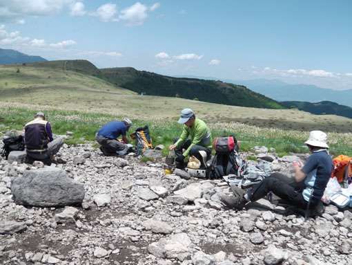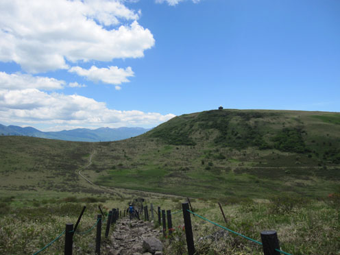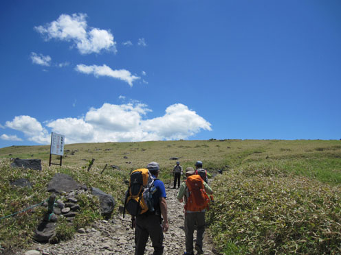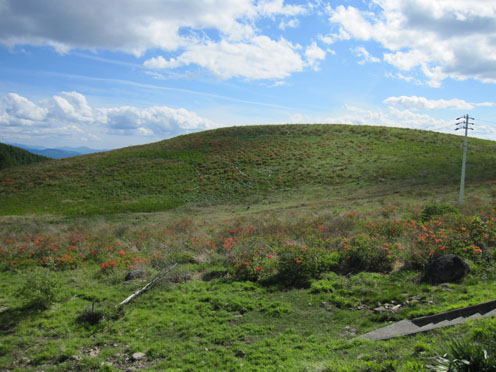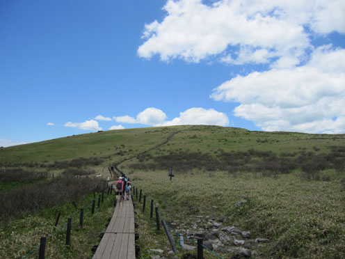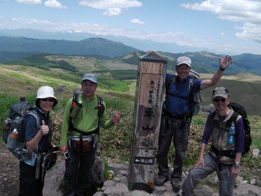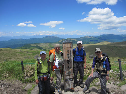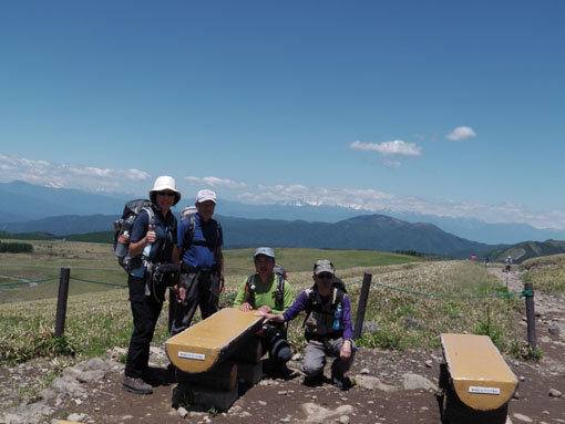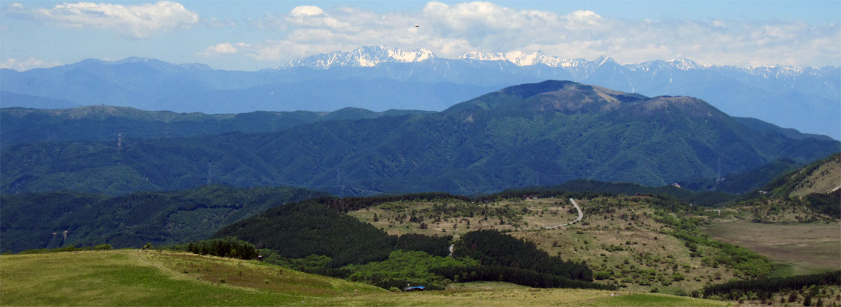 ![]() 車山より北アルプスの尾根を望む! 白樺湖湖畔の宿を出てビーナスラインを霧ヶ峰へ車は走る・・・ 今日も昨日に続き素晴らしい天候です ![]() ビーナスラインより白樺湖&蓼科山 山肌のレンゲツツジ 白樺湖に近づくと湖畔の奥に蓼科山が青空に輪郭を描く! 道路沿いの山肌を見ると低木のツツジが赤く斜面を染めてました ![]() 車山肩の駐車場 霧ヶ峰の笹原 昨日行った美ヶ原は牧草の緑に.一面覆われてたが! 霧ヶ峰は笹原に覆われた山です ![]() 堅いつぼみのレンゲツツジ 肩より登ります 笹の間から顔を出す固い蕾のツツジが今にも開きそうだ 肩の駐車場に車を止めてスタートです ![]() 車山より八ヶ岳連邦 スミレ・・・? 八ヶ岳を始め 霞んで見える富士山や北アルプスが手に取るように姿を現してた ![]() 眼下のビーナスライン 休憩(Gonちゃん~Su-さん~Haruさん~Sadaさん) 眼下のビーナスラインを辿り遠望を望むと、北のシンボル槍の穂先が見える! 車山の山頂へ行く登山道には立派な休憩場所があります ![]() 車山(気象観測所) 山頂(Haruさん~Sei~Su-さん~Sadaさん) 山頂には丸い頭の建屋(気象観測所)が現れる ピークには登山者がいっぱい居ます 登りでは見かけない多くの人はリフトを利用して上がってきた方達の様でした ![]() Gonちゃん~Haruさん~Su-さん~Sadaさん 山頂より奥の尖り(蓼科山) 車山では小休憩で乗超方面へ下りました 階段状の道は作り替えたのか新しい素材でできてます ![]() 岩に乗るSei Haruさん 山頂にある大岩に乗りポーズをとりました・・・笑 ![]() 青空の真ん中に点(グライダー) 乗超の道標 真っ青な空に点が(中央の白い)見える これはグライダーが飛んでる処をカメラに納めたのですが・・・笑 肉眼ではハッキリと確認できても写真では・・?ですね! ![]() 霧ヶ峰の山肌 登山道より気象観測所 どこまでも続く笹原の大地 霧ヶ峰もガスに覆われたら行く先を見失うでしょうね! ![]() 整備された道 イチゴの花・・・? 登山道は木道で作られてるところが目立ちます 山には高山植物がいっぱい咲いてると思ってましたが 小さな花がチラホラ咲いてるだけでした ![]() 可愛い花が咲いてました 三叉路に在る道標 目線を足下に落とすと白い可憐な花を見つける 笹に覆われた山は花が生息するのに向いてないのでしょうかね! ![]() 広大な大地(霧ヶ峰) 蝶々深山 山頂(Gonちゃん~Haruさん~Sei~Su-さん~Sadaさん) 谷筋から少し登ると蝶々深山のピークに着きます ![]() 休憩です 山肌に転がる岩 蝶々深山でお昼時を迎えた 肩のお店で購入したビールで乾杯です 360度の展望を眺めて心地よい一時を過ごしました ![]() 雑木林を通過 ホウチャクソウ 今日のルートは肩の駐車場を拠点に回り込む様に設定しました アップダウンを数回繰り返し雑木林の脇を通り標高を下げます ![]() スズラン 分岐にて! 林の中のペンションを左右に見て出たところが三叉路の道標が在る処だ そこから肩の駐車場までは急登が続きます 気温も上がり汗が噴き出す坂道に最後の力を振り絞りました(かなり大げさな表現)・・・爆笑 皆さん二日間の楽しい時をありがとうございました ・・・Sei・・・ 動画をご覧くださいね! 戻る |
