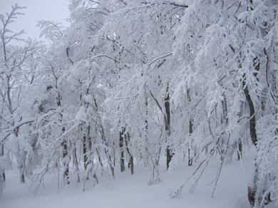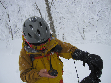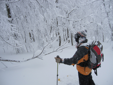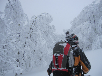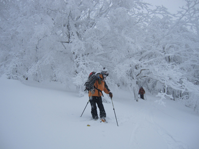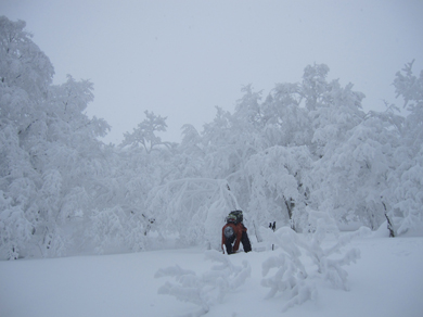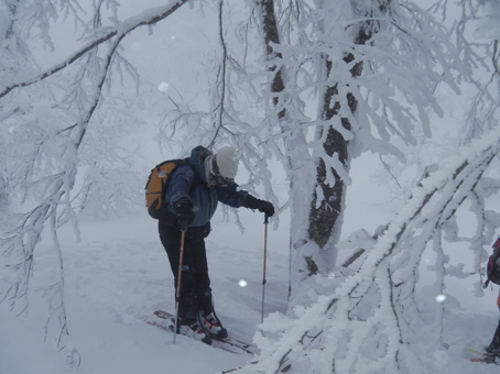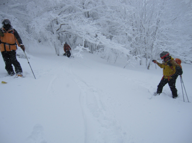 ![]() パウダースノーの雪原 雪が降りしきり荒れ模様の天候です 予定では西大巓の南西尾根を目指してたが急きょ変更して猫魔へ来ました ![]() ゲレンデのNobuさん~Haruさん~Gonちゃん GPSを確認します ゲレンデTOPでGPSの地図を確認して山へ入ります ![]() ガスで視界が悪い林間 雪化粧が見事です 予定外の山の為にルートは入力がありません しかし毎年楽しんでるコースの為に林間へ入ります もちろん入山届はゲレンデハウスのパトロール室へお願いしました ![]() ボードのNobuさん 新雪を楽しむHaruさん 林間はガスがかかるも白銀の世界を楽しむことができます ![]() GPSを確認するSei 真っ白な木々 チョット油断すると沢へ入ってしまう為に確認が大切! ![]() 気持ちのいい粉が! ボードが走らない パウの雪原も斜度が足りないとボードが走りません ![]() 良い斜度へ来ると突進です Nobuさん なかなか連続して良い斜度が現れません ボードのNobuさんは一苦労でした・・・苦笑 ![]() Haruさん Gonちゃん HaruさんとGonちゃんは粉に戯れてました ![]() 斜面を見つけて滑るNobuさん 休 憩 粉の雪原に言うことなしですがコース取りが・・・? ![]() 滑降ルートを見つけるHaruさん 雄国沼まで下り登り返す予定なので 好きな斜面を見つけて滑ることになってます ![]() なかなかいい斜面が出てこないとSei 何度かトラバースしながら適度な斜面を見つけて パウを食べる予定のSeiでした ![]() シールの調子が悪いGonちゃん 凍りついたHaruさん 今年初のBCスキーの為に段取りが今一つ足りない・・・? GonちゃんとSeiのシールが剥がれて登り返しに悪戦苦闘です 補助のテープでシールを固定し事なきをいました Haruさん Nobuさん Gonちゃんお疲れ様でした ・・・Sei・・・ 動画をご覧くださいね! 戻る |