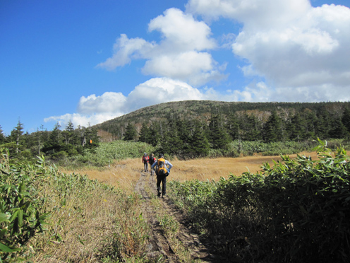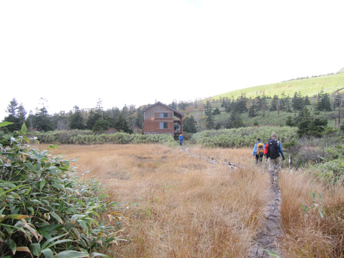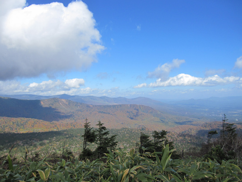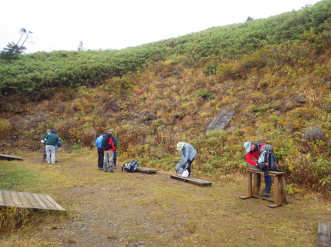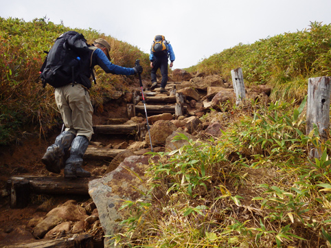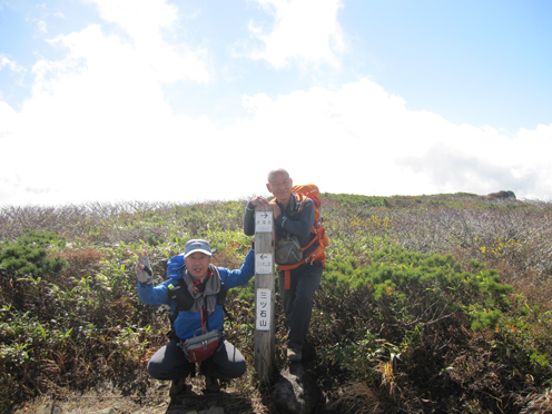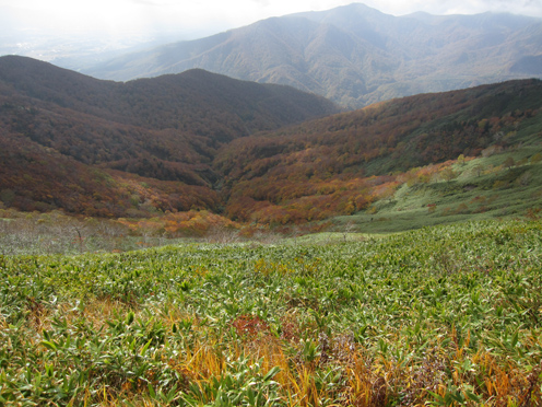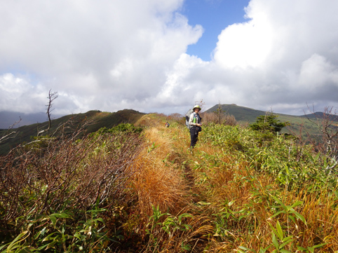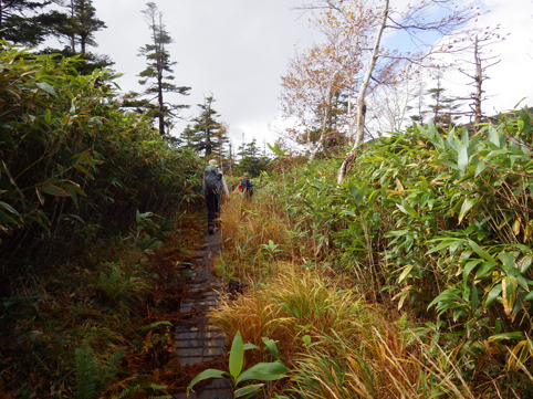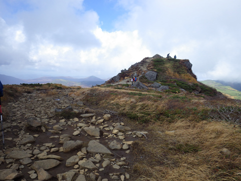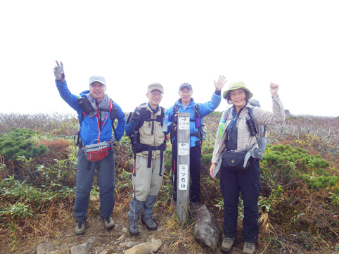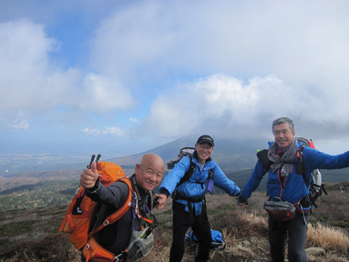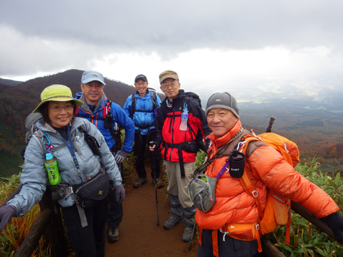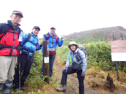 ![]() 三石湿原より(三石山) 郡山をAM3:00に出て網張登山口に着いたのはAM7:30です 山の準備をしてリフトに乗った時間は7:45分でした ![]() 網張温泉リフト乗り場 山肌の紅葉 私たちがリフト乗り場に着いたときは登山者は疎らです チケットを買ってTOPへ 夜露に濡れたリフトのシートは水分を含み尻が冷たくなる・・・笑 錦色に輝く紅葉を眺めて3本乗り継ぐと終点に着いた ![]() リフト終点 展望台(Gonちゃん・Haruさん・Su-さん・Sadaさん・Sei) 稜線近くは冷たい風が吹いてて寒い 之はたまらんと皆さんウエアを着こんでスタートです ![]() 犬倉山分岐 大松倉山 犬倉山の分岐から西に進めば大松倉山へ 一旦下り稜線歩きになると泥濘の登山道が続きます 足元は泥で汚れ悲鳴とともに転んだりと悪戦苦闘の歩きとなりました・・・笑 ![]() ナナカマド 大松倉沢の紅葉 稜線の鞍部を過ぎると泥濘が無くなり快調に歩くことが出来る 此のころから太陽の日差しも下りてきて紅葉の山肌を照らし始めた ![]() 大松倉尾根 山頂(Sadaさん~Su-さん~Haruさん~Sei) 森林限界に出ると笹の山肌に変わり視界も良好になります AM10時に大松倉山に着く! ![]() 乳頭山方面の山並み! 高倉山~三角山方面 雲が去り青空も見えて! 眼下の建物や遠望の山並みも確認できるが相変わらず風が強い 通り抜ける秋風に体が冷やされた ![]() シラタマ 草紅葉 登山道の陽だまりにシラタマの実が在ります 真っ白な実を手に未だ元気だったのと声をかけて写真に収めた ![]() 三石湿原 三石山荘 三石湿原に着くと池塘を縁どる草紅葉が綺麗です ![]() Haru&Sei 湿原の彩 木道で足を止めて湿原の彩を楽しみました ![]() 青空に泳ぐナナカマドの実 登山道 湿原から先は三石山頂まで急な坂道が続きます 途中ではほとんど登山者と会わなかったが三石山荘には多くの登山者が居ました 早出で登って来た人なのか小屋泊りなのか・・・? ![]() 三石山の尖がり 山頂(Sei~Su-さん~Haruさん) 山頂の風は強く汗ばんだ体が一気に冷えて寒い 記録写真を撮り直ぐに降りることにした ![]() 山頂の道標(Haruさん~Sadaさん~Su-さん~Gonちゃん) Sei 道標と尖(岩場)がりの位置は10m程離れてます 360度の展望を楽しむも、寒いのと強風を避ける為に直ぐに下る ![]() 湿原の木道 池 塘 三石山の直下までおりて休憩を楽しみます 斜面が風除けとなり陽だまりが出来て暖かい 眼下の景色を眺めて35分の泡タイムを楽しみ往路を戻りました ![]() 草紅葉 登山道より(三石山) 湿原まで下ると三石山の全貌が現れ! 無木立の斜面に一筋の線が延び山頂へと続いてます ![]() 岩手山を後方に(Sei~Haruさん) 鎌倉森の紅葉 大松倉山の稜線まで来ると前方に岩手山が! 行きでは隠れてた山も強風にあおられて雲が去り雄大な姿を現した。 ![]() 燃える赤(鎌倉森) 渓 流 下山時は燃える様な鮮やかな山肌を望み一日が終わりました Haruさん Sadaさん Su-さん Gonちゃん お疲れ様です 宿へ行き飲みましょうね~ ・・・Sei・・・ 動画をご覧くださいね! 戻る |