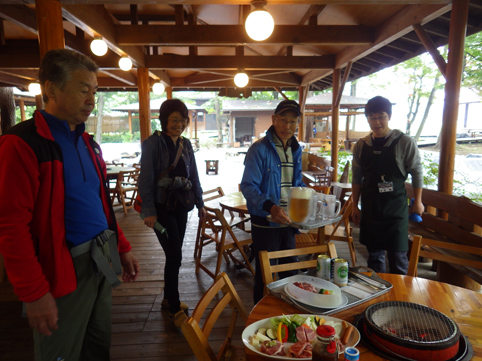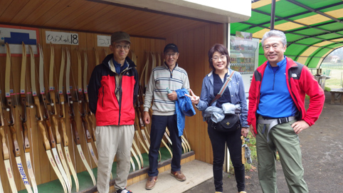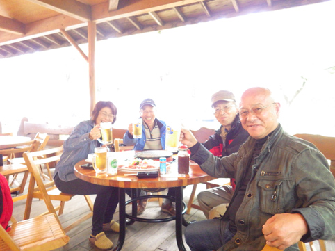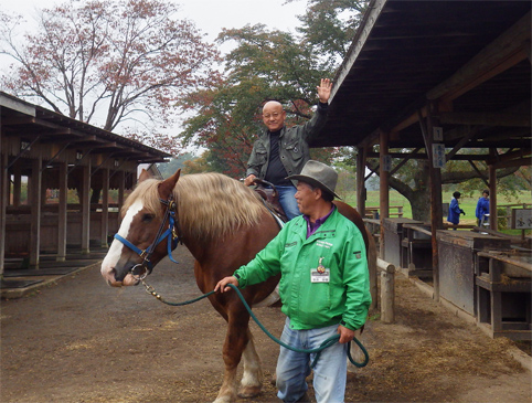 ![]() 小岩井牧場 連休二日目の予定は犬倉山を経て黒倉山へ登るはずでした しかし朝から降りしきる雨が宿の窓越しに見える ん~ どうしようかと早朝の緊急会議が始まりました 5分ほどで会議が終わり・・・笑 登山は中止 観光地巡りをすることに成り小岩井農場に出撃です ![]() 牧場入口(Haruさん~Sei~Su-さん~Gonちゃん~Sadaさん) 農場に着くと何と雨が上がりました この調子では山も行けたのではと岩手山方面を眺めるも 分厚い雨雲で覆われ姿を見る事は出来ませんでした ![]() 弓 道 見事な弓でした・・・笑 場内を巡り散策を楽しみます 最初に着いた場所は弓道の出来るコーナーだ 経験が在るのはSadaさん一人です 弓の持ち方も矢のセットも出来ない私たちは的を射ることが出来ません・・・笑 4本目あたりから何とか前に飛ぶように成り 10本の矢で的を射たのは Haruさん4本 Sadaさん3本 Sei3本 Gonちゃん1本 Su-さn0本 上記の様な結果に成り的を射ない分は1本に付¥100の罰金が科せられました 収益は夜の宴会用に買った酒代となる・・・爆笑 ![]() 乗 馬 Gonちゃん 続いて乗馬のコーナーに行きました 勿論はじめての経験です 大きな馬体の黒毛と茶毛が私たちを迎えてけれました 初めて乗るGonちゃん余裕の笑みがこぼれてます ![]() Haruさん Sei Haruさんは気持ち良さげですね~ Seiも勿論初めての経験です 馬の背中は分厚く安定感があり乗り心地は最高でした 僅か一周の乗馬でしたが楽しい思い出の時間となる! ![]() 場内を散策 牧場の列車 場内には売店や食事の場所が点在してます 広場ではボール転がし人工池で船遊びも楽しんでる姿が見られました ![]() BBQです 乾 杯 お昼時になりBBQを食べる事に! 其処で出てきたのがジャンケンで勝負し、運転手を決める事です HPの動画にはジャンケンの様子が収められてる よ~くご覧くださいね! 負けた人は生ビールを飲む事が出来ません・・・笑 当然ノンアルで我慢することになります ![]() 盛り上がる 腕を組むHaruさん ガンガン盛り上がるが!・・一人だけ盛り下がる人物が居ました 果たして誰なのでしょうか画像からご想像くださいね! 生をピッチャーでお代わりは二杯目だ 美味しいと喉を鳴らし食べて飲んで談笑が続きます・・・笑 ![]() ノンアルを手に! 館内巡り 此処の画像でお判りでしょうが敗者はHaruさんです ノンアルを2杯飲んだのは初めてだと苦笑でした ![]() マスコットとHaru&Sei 花壇の前にて! 広い場内は歩いても歩いても全てを見ることが出来ませんでした ![]() 場内の花ー1 ![]() 場内の花ー2 遊歩道には花壇がいっぱいあり季節の花が咲いてます 入場料¥600係りますが十分に価値が在る小岩井農場でした Haruさん運転ご苦労様です 登山中止の観光は楽しい一日でした 動画をご覧くださいね! 戻る |