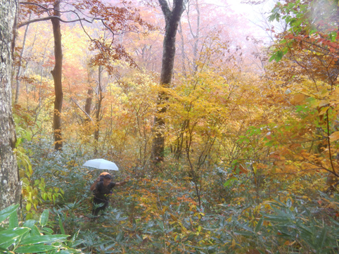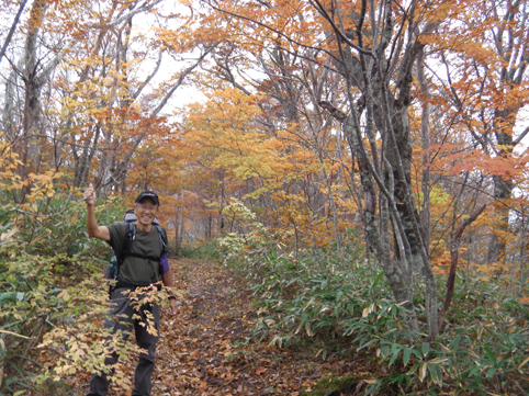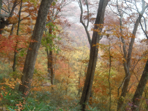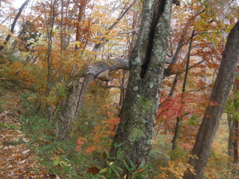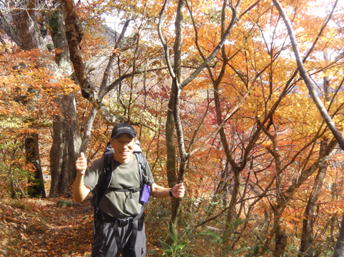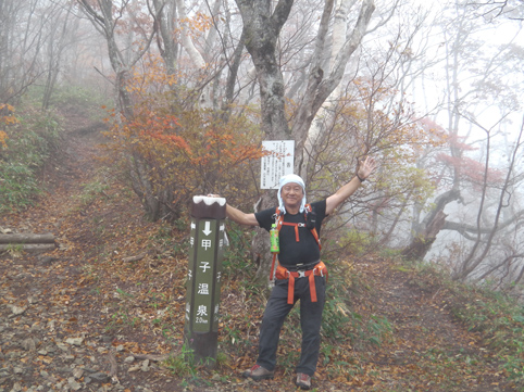 ![]() 紅葉の甲子山 紅葉も最終コーナーを回ったと便りが届き 甲子山へ来ました 東北道を走る車窓には雨粒が降りかかる ん~~ 折角の紅葉登山に水を差すのかと独り言を話しながら登山口へと急ぐ! ![]() 甲子トンネル 登山道の彩 登山口に着くころになると雨も上がりガスも薄くなった トンネル上部の木々は赤く染まり紅葉真っ盛りの景色が迫ってきます ![]() 落ち葉を踏みしめて!(Su-さん) Sei 登山口で合流したSu-さんとAM8:20分に出発だ 今日は遅くても12時までには下山しなくてはならない事情があります・・・笑 それは山小屋の薪ストーブに初めての火入れを予定してるからです (午後からHaruさんと合流) ![]() 艶やかな木々 猿ヶ鼻(Su-さん) 彩の木々に魅せられて登る 落ち葉を踏みしめる音がサクサクと気持ちがいい! ![]() 分岐に着いたSu-さん 雨の中のSei 甲子峠の分岐まで来ると雨が降り出した 急いで山頂に向かう二人 ![]() 山頂の道標 山頂のSu-さん 山頂にはAM9:50分に到着した 常には大休憩を楽しみ喉を潤す儀式が在るが今日は下山することになります 其処に茨城から来た単独の登山者が現れ 少しの山談義を楽しみ大粒の雨に追われるように下山でした ![]() 下山道に輝く紅葉 魔力の景色 雨具も着ないで下る体に容赦なく下着まで浸水いたします・・・笑 それでも木々の魔力に癒されて爽快な気持ちになった ![]() 雨の下山 急に出た太陽 時間を気にしての登山は予定通り12時前に登山口へ下りた 降り続いてた雨も 何と上がり太陽の日差しが降り注ぐ 気まぐれな天候を楽しめた素晴らしい山行きでした Su-さん 急いで山小屋へ行きましょうね! ・・・Sei・・・ 動画をご覧くださいね! 戻る |