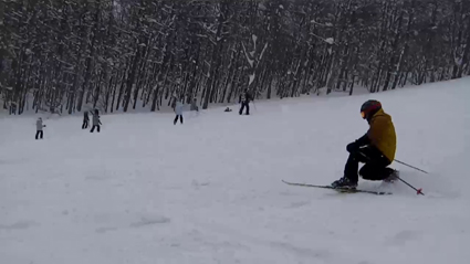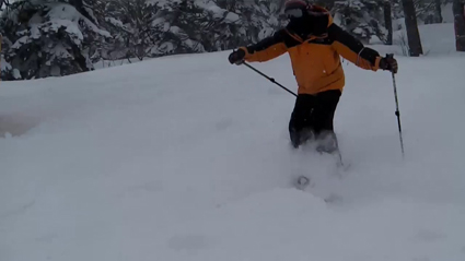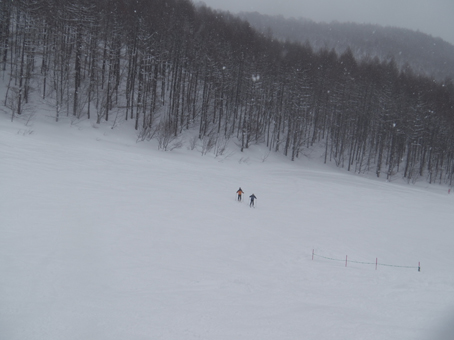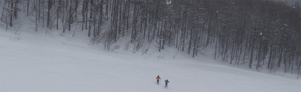 ![]() デコの新雪斜面 昨日から降り続く雪 ゲレンデにはパウダースノーが待っていました 本来なら西大巓にBCスキーに行く予定でしたが 50cm以上の新雪や強風雪の予報を考えてゲレンデを楽しむことになりました ![]() Gonちゃん ゴンドラにて Haruさん ゴンドラに乗り込むと二人の意見(BCスキーは中止)は強固なものです 二対一では強行は出来ないと意見に従う・・・苦笑 ![]() リフトTOP 粉の斜面 リフトTOPに着くと山頂方面へのトレース(ワカン&スノーシュー)が在ります でもでも今日は中止と決めたと予定変更はありません! ![]() ラベンダーAコース 天気予報が悪いからか人影が少ない 私たちが駐車場に着いた時間は9:30分くらいでしたがゲレンデハウス前の 駐車場に入れたのだから来場者が少ないということかな・・・? ![]() 滑家が少なく最高です 深雪を楽しむGonちゃん Haruさん ラベンダーコースは粉が多い時は特に面白い滑りができます ![]() 50cmの新雪 ラベンダー2Bコース 深雪のコースはBCスキーを楽しんでる様でした Haruさんは直滑降でガンガン攻めます ![]() Gonちゃん 貸し切りコース まるで貸し切りのようなゲレンデを走り回る ![]() Sei Haruさん Seiも粉へ突っ込み遊んでる Haruさんは歓喜の雄たけびを上げて板を跳ね上げる ![]() Gonちゃん Haruさん 今日のゲレンデはとにかく面白い! ![]() Haruさん Sei ラベンダーコースを数本楽しんだ時のことです Seiの腰に鈍痛が走り 滑りを一旦終えてゲレンデハウスで休憩でした そのまま撤退すれば良いものを午後に一本とリフトに乗りTOPへ繰り出す それが「七転八倒」の序章となりました ![]() Gonちゃん ![]() Gonちゃんが粉と遊んでました 粉と戯れたデコの3時間余り 楽しい一日が終わり帰路の途中にある中ノ沢温泉で一風呂浴びて終了いたしました Haruさん Gonちゃん大変お世話になりました ・・・Sei・・・ 動画をご覧くださいね! 戻る |