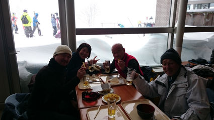 ![]() 眼下に猪苗代湖を望む! 早朝から荒れ狂う空模様でした 磐越道は熱海ICから先の下りが事故で通行止めとなっています 群馬から合流したSu-さんは出口のICが渋滞して数キロの移動に1時間強を要しての脱出でした・・・苦笑 ![]() 猪苗代中央ゲレンデ ミネロゲレンデ(Haruさん・Gonちゃん・タッシーさん・Su-さん) ゲレンデには午後からの出撃! 大粒の雪が降ってたと思いば急変する天候で青空も広がります ![]() 時折吹雪くゲレンデの様子 眼下の猪苗代町 滑る間も吹雪いたり雲間から太陽の日差しが下りたりと目まぐるしく天候が変わってた ![]() 広大なコース 展望のスキー場 ミネロと猪苗代中央を行き来出来るので広いエリアを楽しむ事が出来る ![]() 青空が広がりました 眼下には素晴らしい景色が広がり 街並みの奥には猪苗代湖が裾野に横たわっていました ![]() 緊急会議 Haruさん ミネロに着いた私たちはゲレンデハウスで緊急会議です 余りにも天候が悪いために此のまま滑りを中止して山小屋へ避難するべきか否か真剣に討論しました・・・苦笑 AM10:30分に着いて緊急会議(泡を片手に休憩)が終わったのは正午です 外を見渡せば青空も見えてきたために滑ることになったのだ! ![]() タッシーさん 中央連絡コース 午後スタートの私たちはミネロから中央ゲレンデへ移動する ![]() Gonちゃん 雲行きが怪しくなる 突然吹雪いて来る天候ながら上質の雪にチョー満足でした ![]() Su-さん Haruさんが来ました 60歳のデビューながら今回で4日目のゲレンデはSu-さん 斜面に対して恐怖感が無くなったと! 飛ばしすぎですよ~・・・笑 ![]() おとなしく滑るSei スキーを始めて4回目のSu-さん 腰の不調はSei 雪質を確かめるようにソロソロと滑ってます PM3:30分にはゲレンデを後にして山小屋へ急ぐ姿が在りました 早く飲むど~~~ 動画をご覧くださいね! 戻る |