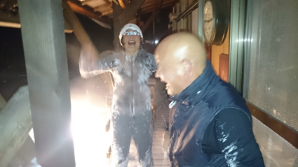 ![]() 第一リフトTOPより 今日も朝から雪が降ってます 三時間も滑れば良いかなと出かけるも・・・? 後にアクシデントが(ストッパーが壊れた)発生し2時間の滑りでゲレンデを後にしました・・・苦笑 ![]() 第一リフト ファミリーコースへ移動 AM10:00に第一リフトに乗り チャレンジコースやシャクナゲコースへ移動して滑ります ![]() 男坂ゲレンデ 第一リフトのSu-さん 男坂ゲレンデは空いてて良いが単調な滑りになるため ポニーコースを横切り第二リフトへ向かった ![]() 腰を気にしながら滑るSei Haruさん&Gonちゃん 未だ療養中のSeiは抑え気味に板を走らせる HaruさんとGonちゃんは元気いっぱいに吹っ飛んでます・・・笑 ![]() Su-さん&Haruさん 5回目の出撃Su-さん 5回目の出撃はSu-さん 今日もHaruさんの指導の下にガンガン滑る姿が在りました ![]() 流れるように滑るタッシーさん 深雪へ突撃のSei タッシーさんは何時もマイペースですね~ ![]() 今日もやんちゃなGonちゃん ご機嫌のSu-さん Su-さんは滑りが楽しくて休むのも惜しんでます 昼の休憩後に一滑りするはずでしたがスキー金具が壊れて撃沈でした ![]() 腰は大丈夫なのかSei まだ退院して10日目のSeiはコブや急斜面は遠慮して滑る 完治は無いので上手く痛みが出ないように付き合って行くしかないのです・・・苦笑 ![]() 昨晩の一コマ イナダを持つSei 昨晩はイナダの刺身やしゃぶしゃぶで盛り上がりました ![]() イナダの刺身 野菜盛り イナダのしゃぶしゃぶ 出刃包丁一本で捌いたために刺身の形が悪い しかし上品な味に満足です ![]() 雪に飛び込むSei 真っ白になったGonちゃん 外はコンコンと雪が降ってる テンションが上がった二人は雪中にダイビング Haruさんのカメラの餌食になったので在ります・・・爆笑 ![]() タッシーさんの車が! イナダ鍋 朝の一品・・・(笑) 今回もてんこ盛りの食材は食べきれませんです 群馬名物の美味しいジャンボ餃子は夜の部と朝食にいただきました 濁酒やワイン・シャンパンなどなど毎度ながら呆れるような飲みっぷりでしたよ~ タッシーさん Su-さん Haruさん Gonちゃん ・・・次回も楽しみましょうね・・・ Sei 動画をご覧くださいね! 戻る |